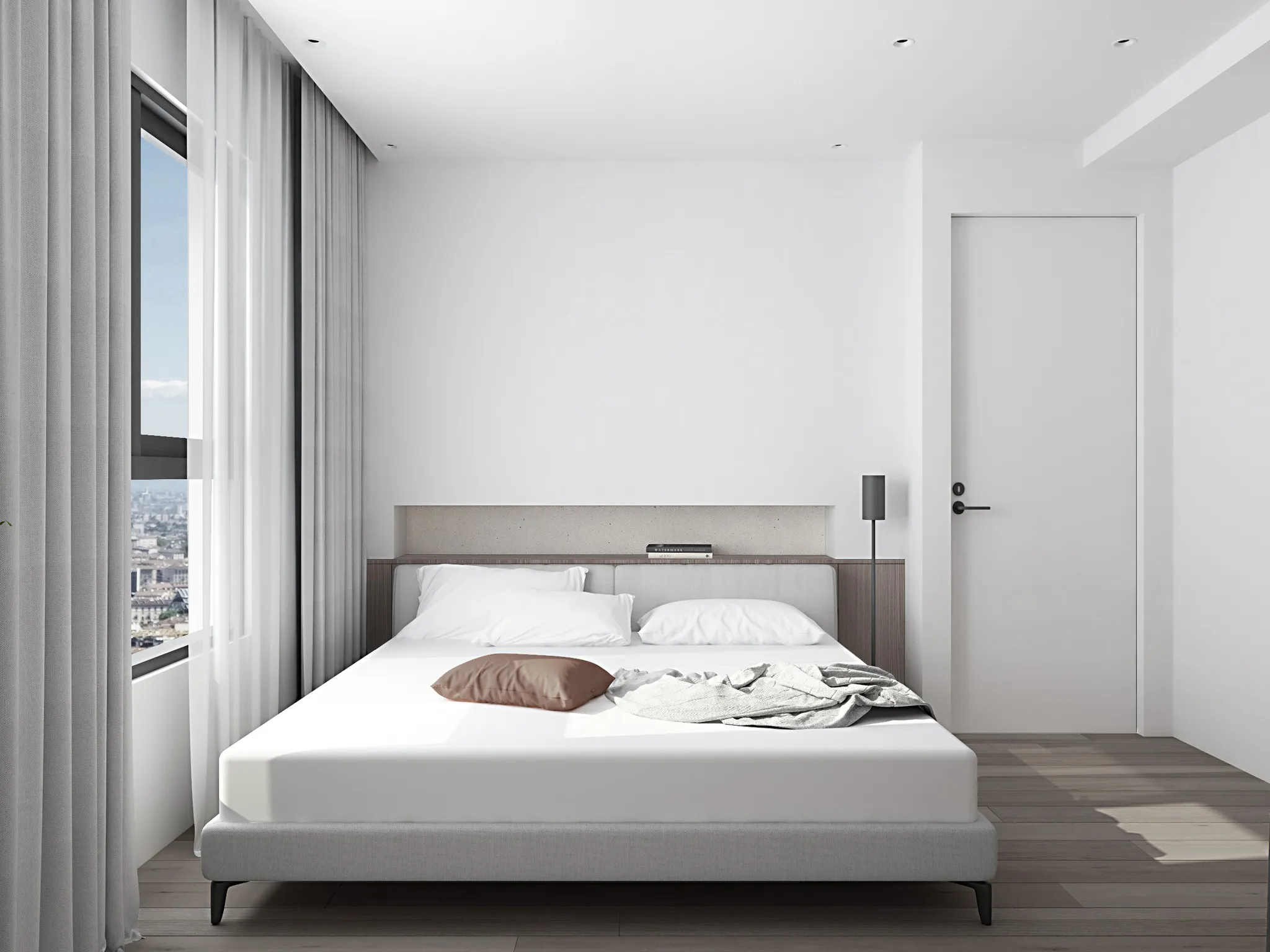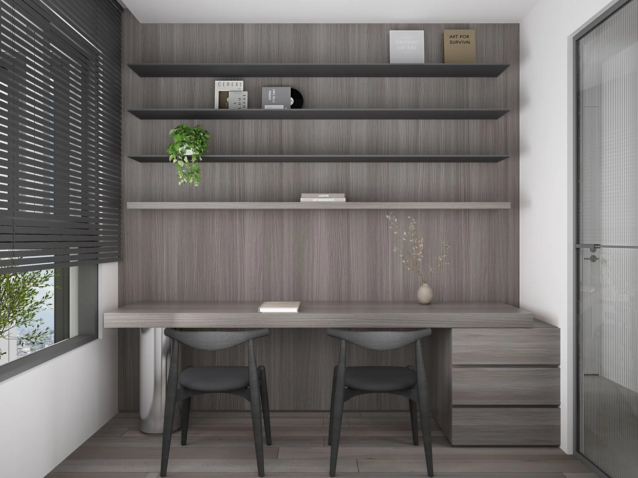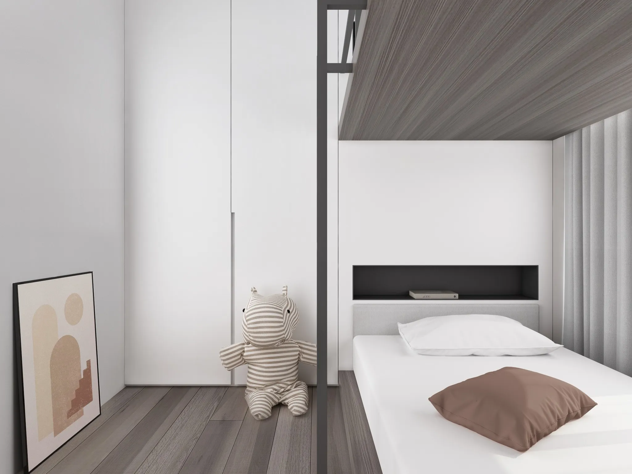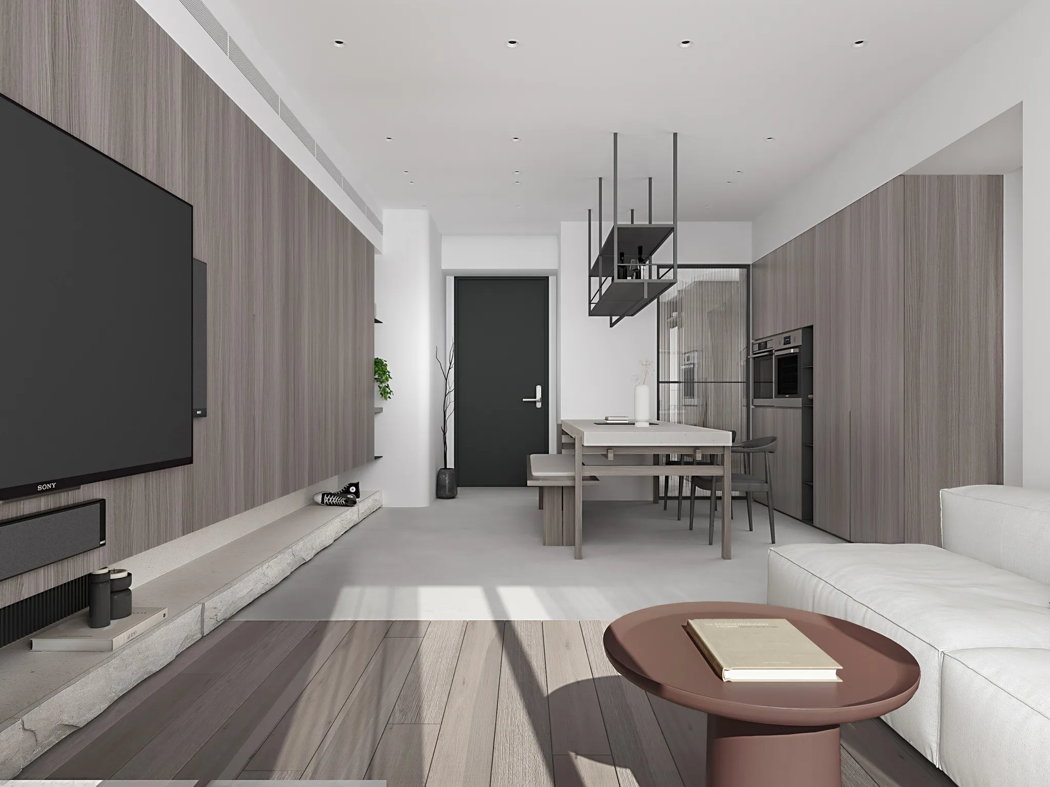 以純白色系為整體空間定調,圓弧天花如同為天光預留灑下的出口,將空間暈染出均質的漫射光。木質元素的地面呈現空間溫潤的調性,猶如承接了天光的照拂,回應著恰如其分的靜謐氛圍,光影也在材質的表情中舞動著時間的姿態。同為木質元素的量體,為空間的立面軸向建構出適切的比例分割,將材料的均衡純粹,錯落有致的佈局在空間中,界定場域的同時,也為白色的簡約刻畫出溫潤的樣貌。