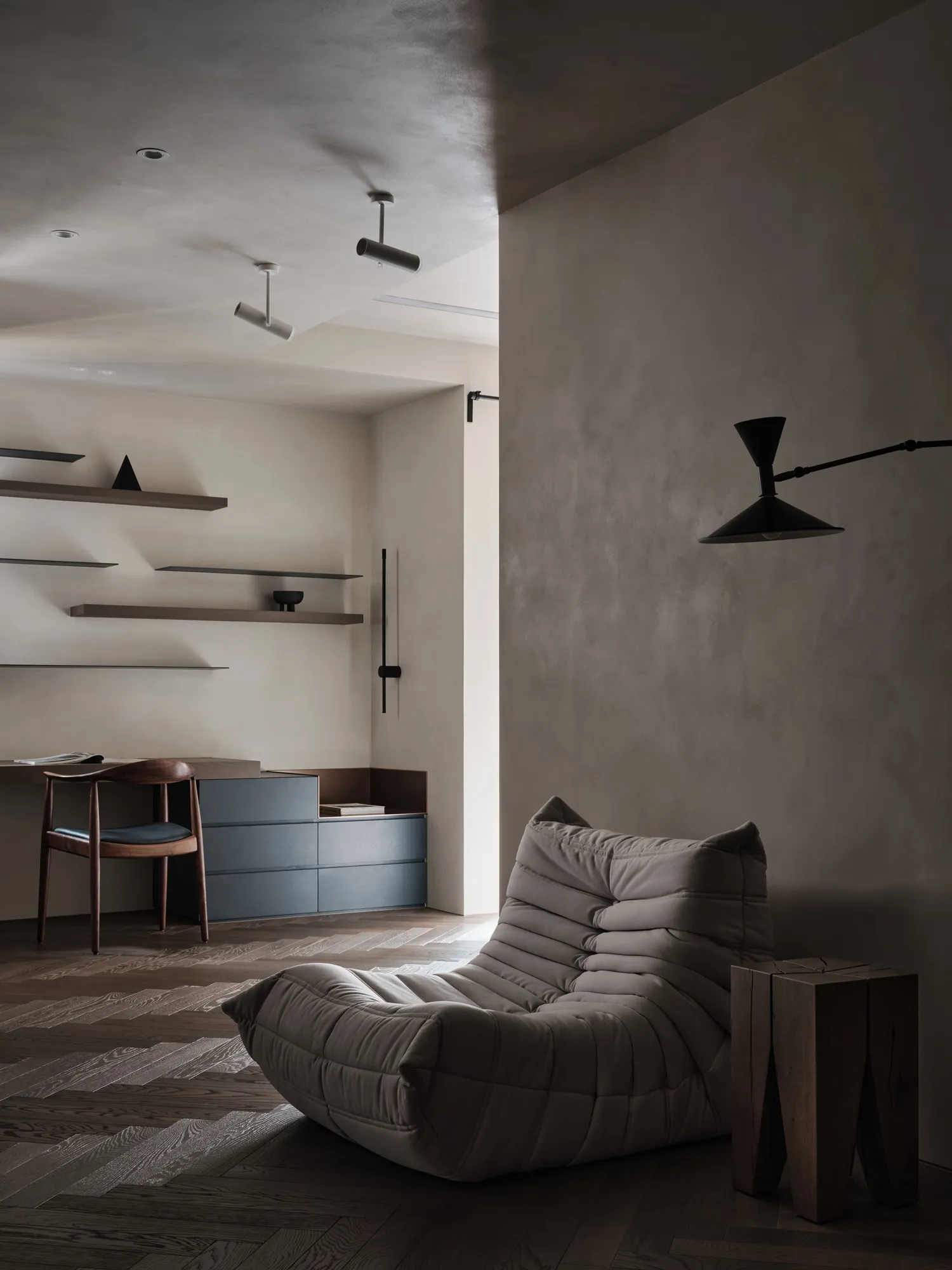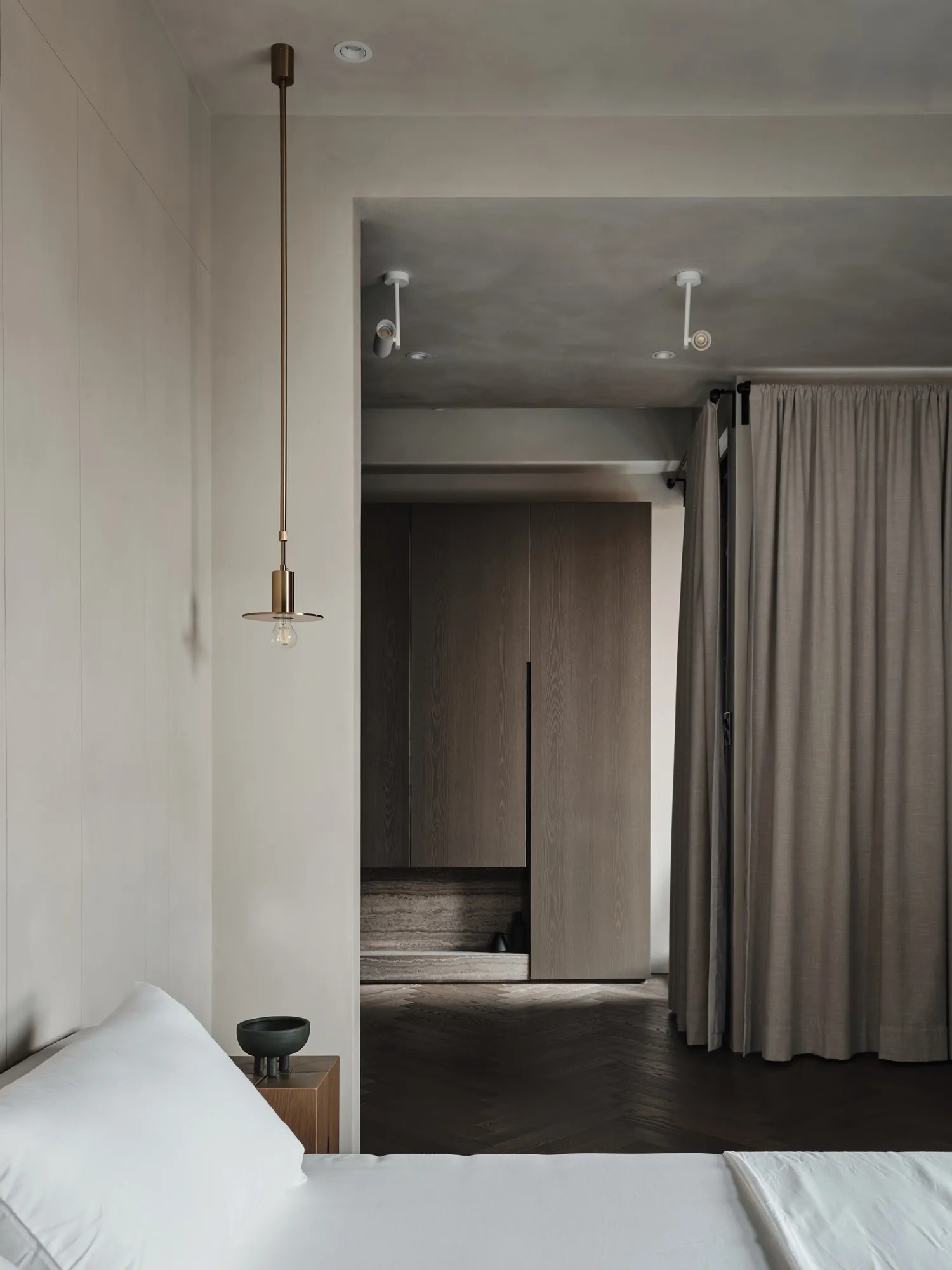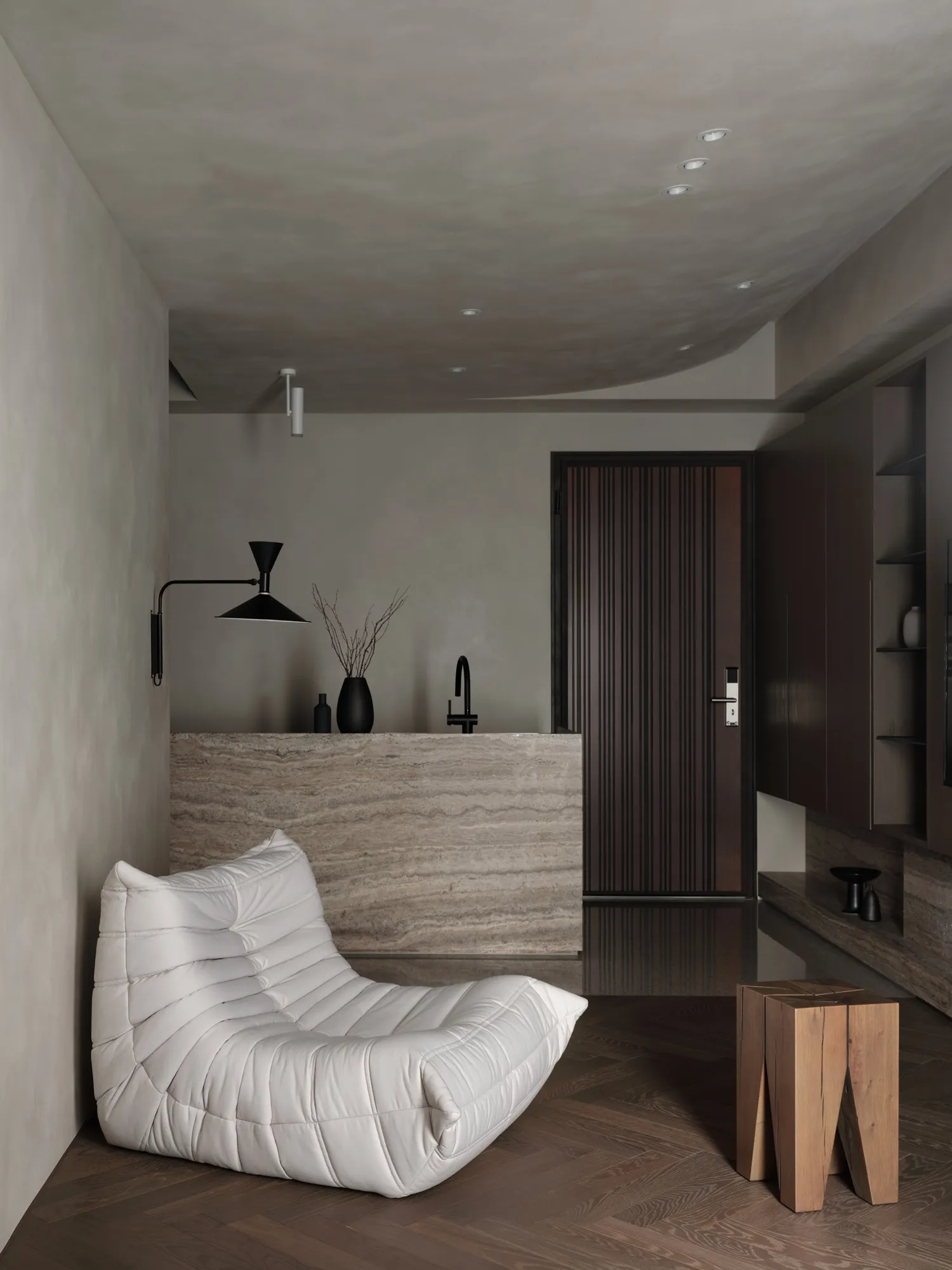 沈浸隱身喧囂的溫潤,轉換都市的情緒,感受空間營造出的閒適氛圍。搭配紋理細膩的特殊塗料,讓視覺獲得極致純粹的感受,木質元素以柔潤的姿態輔助,簡單而細緻,獨特的自然紋理透過光的柔和暈染,細膩地勾勒了時間的痕跡,沈靜之美,富含禪意。不同材質的拼接與融合,將生活與自然相互交織,彰顯出侘寂之美的獨特魅力,唯有在這樣的空間中,我們才能找到心靈的安寧與歸宿。
