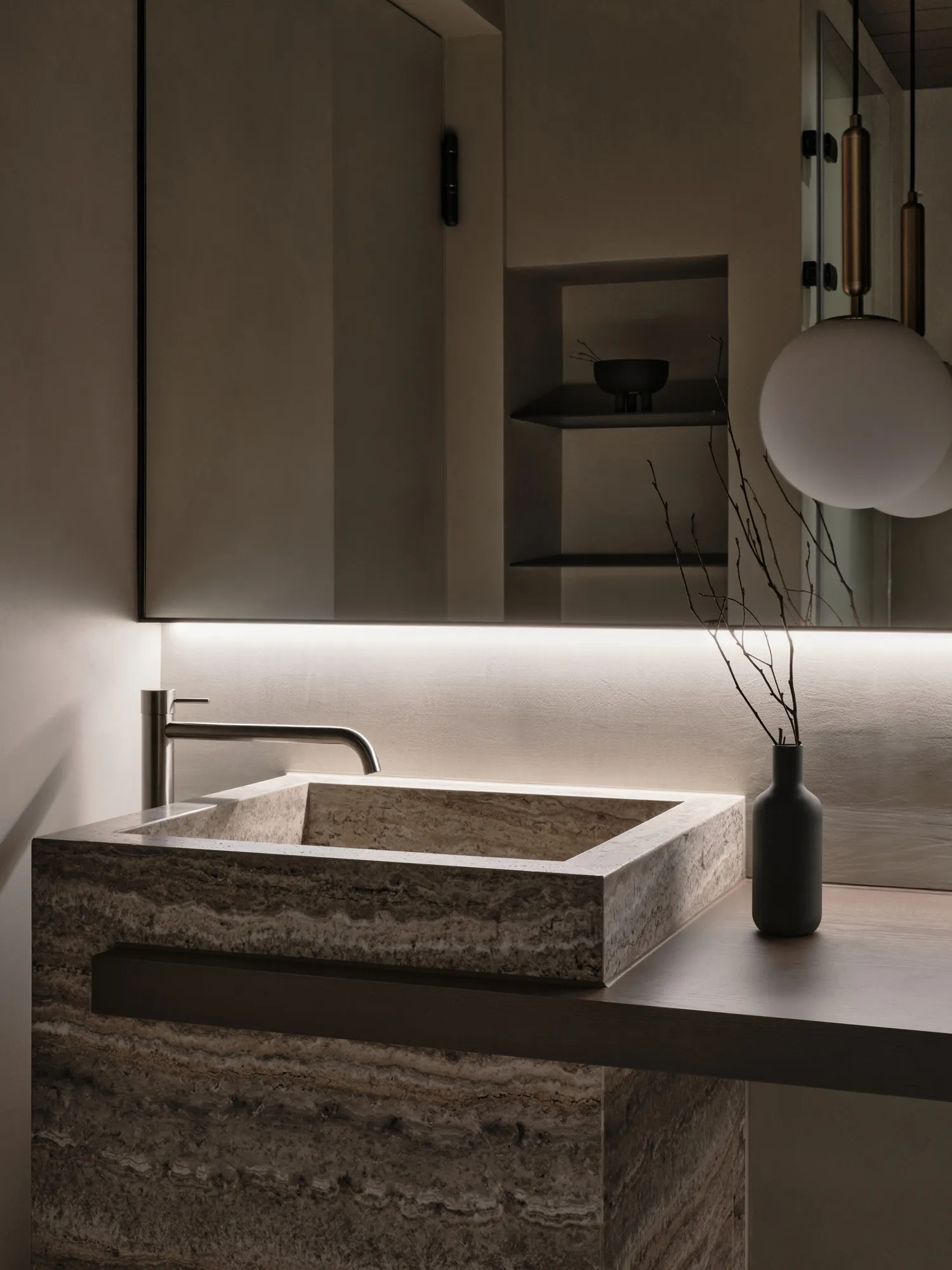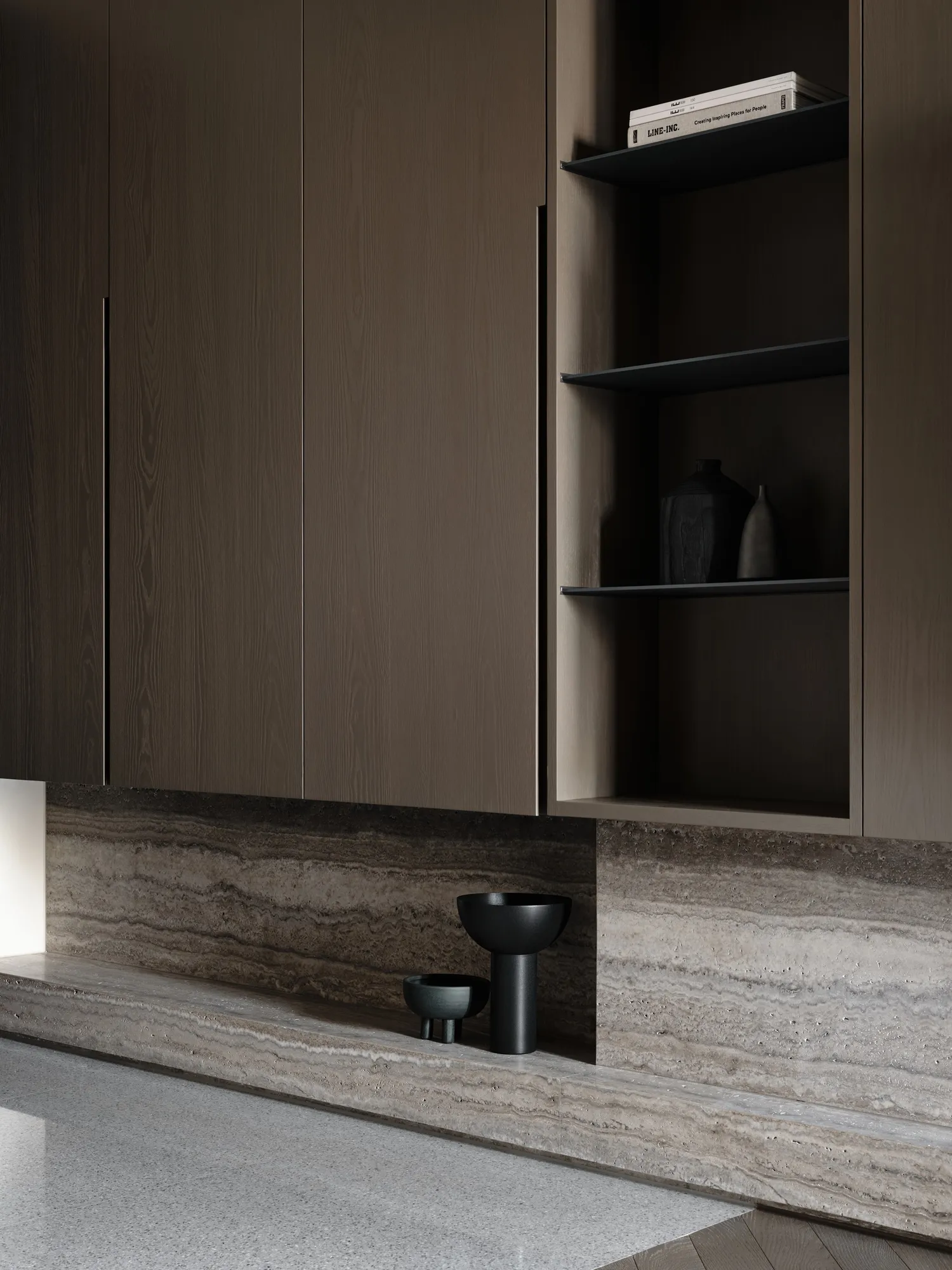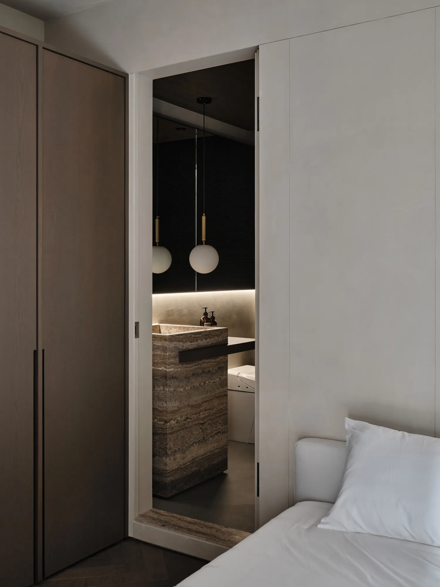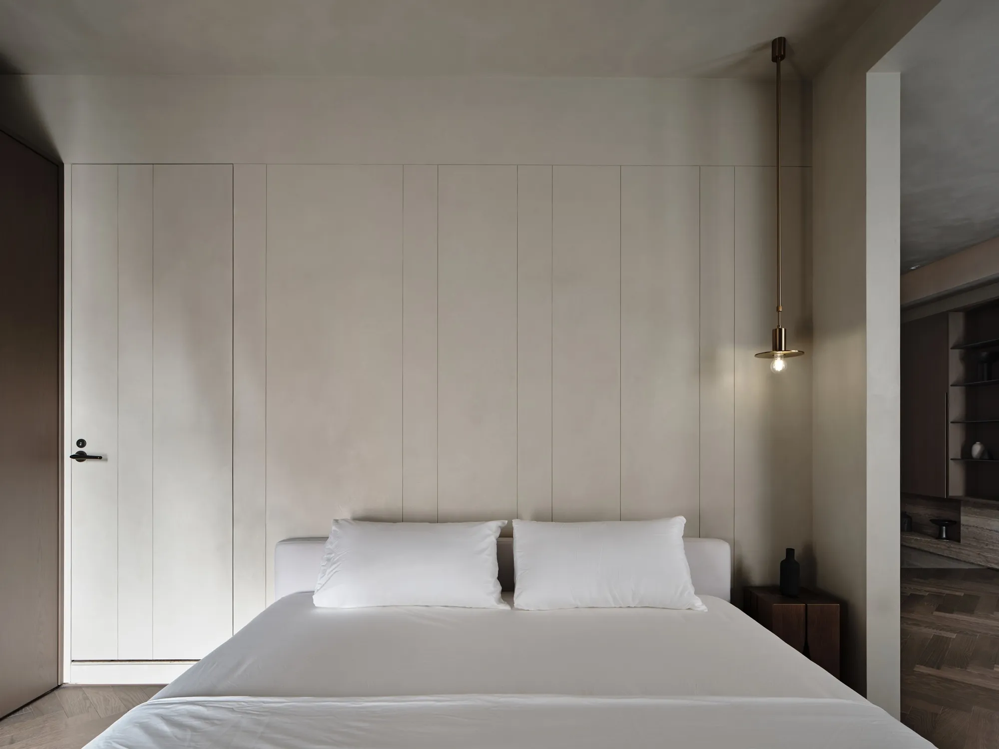 沈浸隱身喧囂的溫潤,轉換都市的情緒,感受空間營造出的閒適氛圍。搭配紋理細膩的特殊塗料,讓視覺獲得極致純粹的感受,木質元素以柔潤的姿態輔助,簡單而細緻,獨特的自然紋理透過光的柔和暈染,細膩地勾勒了時間的痕跡,沈靜之美,富含禪意。不同材質的拼接與融合,將生活與自然相互交織,彰顯出侘寂之美的獨特魅力,唯有在這樣的空間中,我們才能找到心靈的安寧與歸宿。