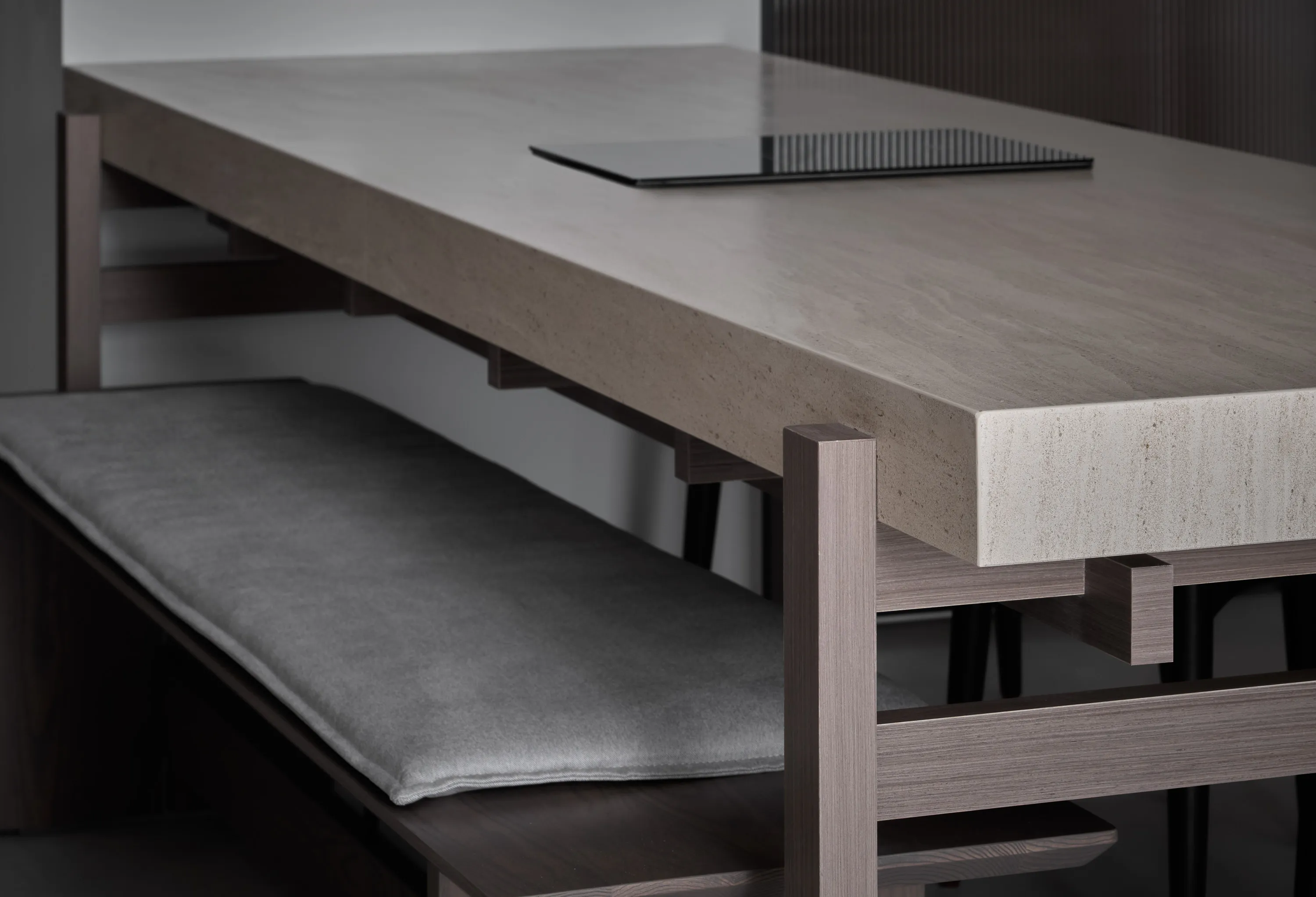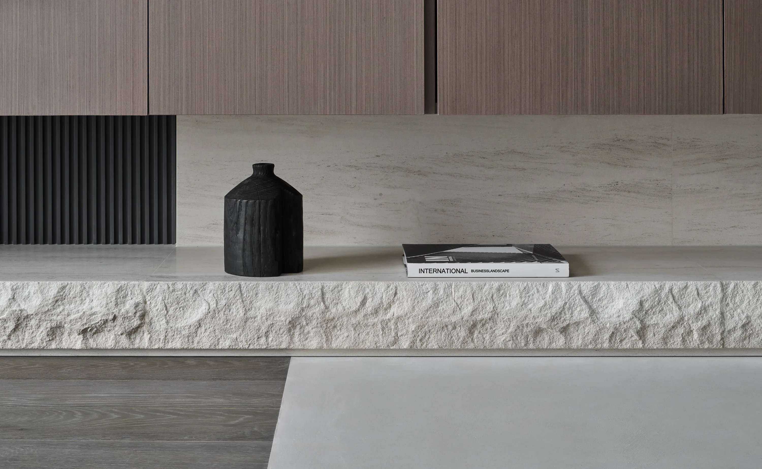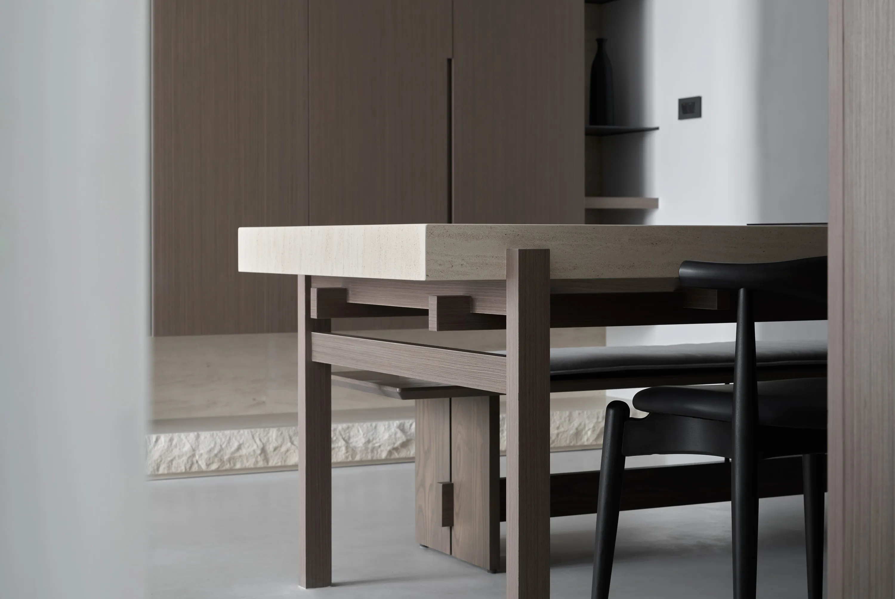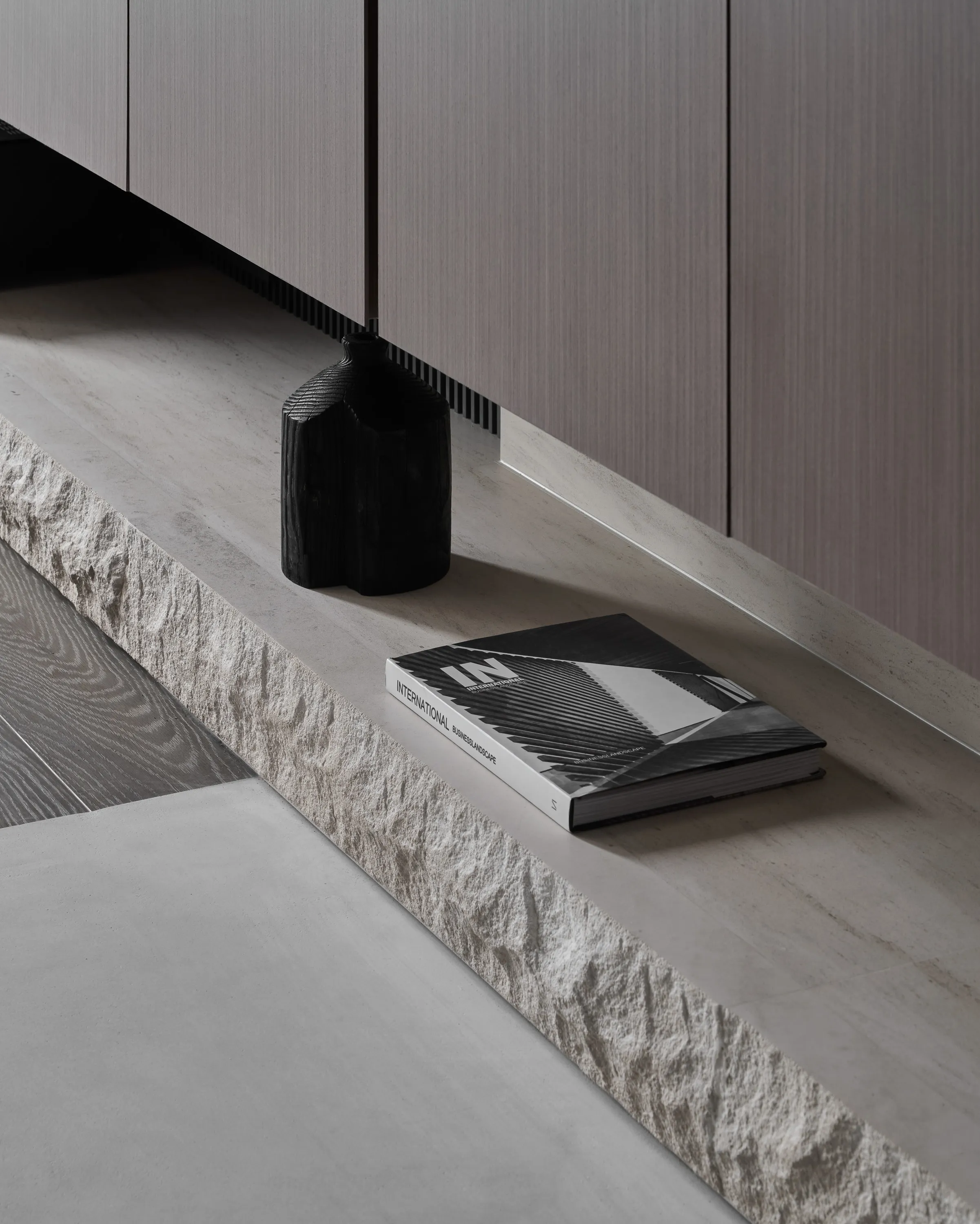 設計不應該只是為了設計而存在,而是對生活方式和空間的深刻回應,並賦予獨特的氛圍,描繪理想生活的樣貌,每一個角落都真實融入日常生活,與居住者的生活體驗相互呼應。以「自然」為核心理念,巧妙地將大自然的元素融入居家空間中,原石的質樸紋理與獨特形狀,展現自然的力量與美感,搭配木質元素,形成流動感與層次感,每一處空間都宛如一幅生動的畫面,捕捉著自然獨特的風景,木質元素在立面設計中的運用,精確地分割了空間比例,使材質得以純淨與均衡、呈現空間的本質,讓光影與材質的細緻展現時間的流動,傳遞生活的真實樣貌。設計不僅是空間的塑造,更是生活方式的展現,讓居住者感受到自然的呼吸、和諧,與深度連結。