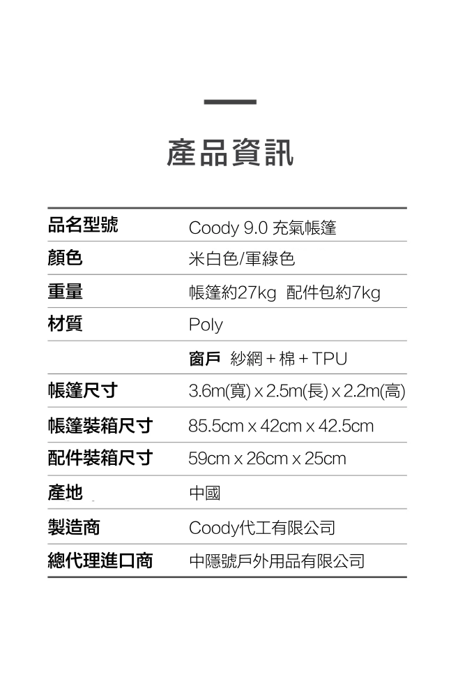 • Coody 9.0客廳擴充帳 充氣帳篷