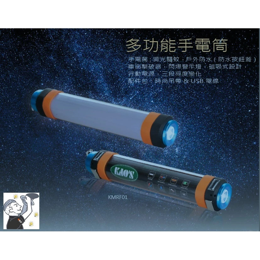 功能:手電筒、三段調光燈(白光)、驅蚊燈、行動電源、擊破器、警示燈、磁鐵
