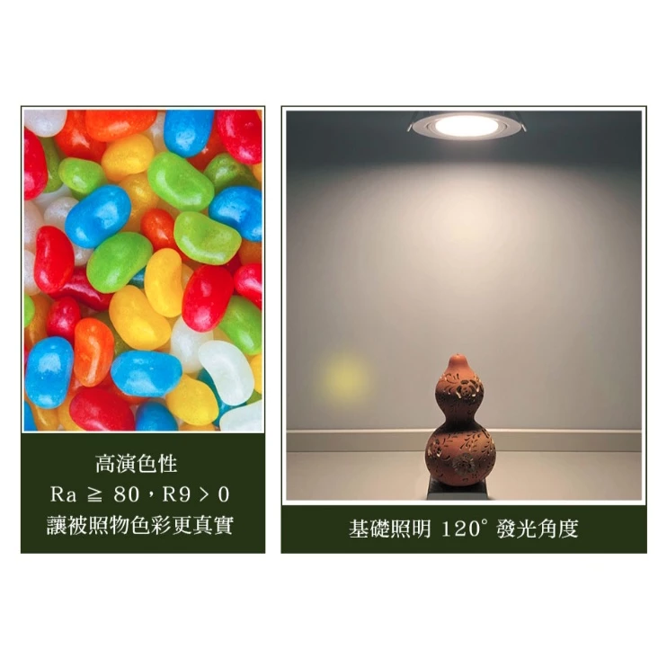 ☆高演色性 Ra ≧ 80,R9 > 0,讓被照物色彩更真實