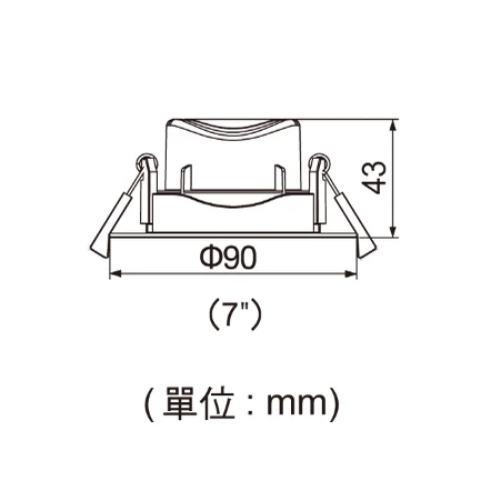 ☆ 尺寸 : Ø90mm H:43mm(崁入孔Ø 70mm 5W)