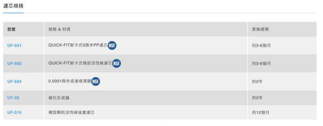 商品賀眾牌【UR-6602AW-1】飲水機專用 快拆式一年份濾心組 (不含RO膜)【原廠台製】【NSF認證】