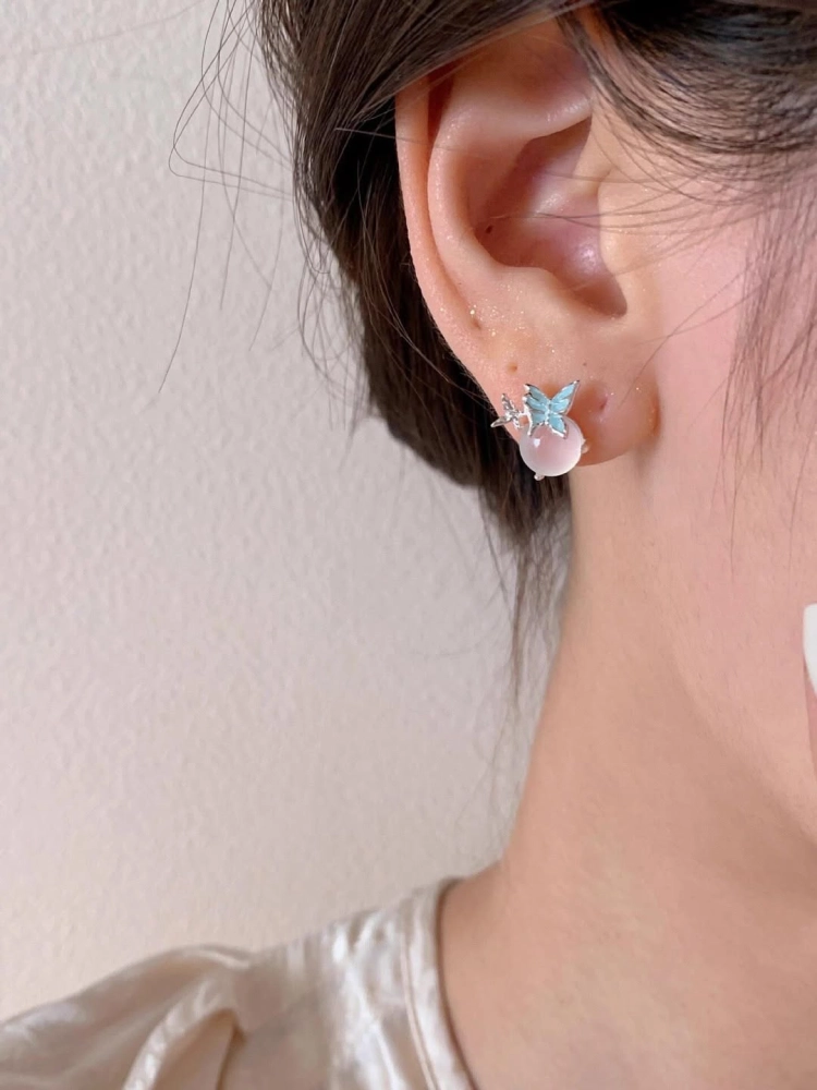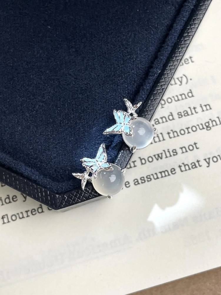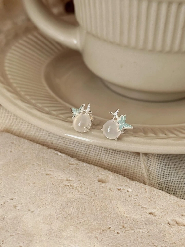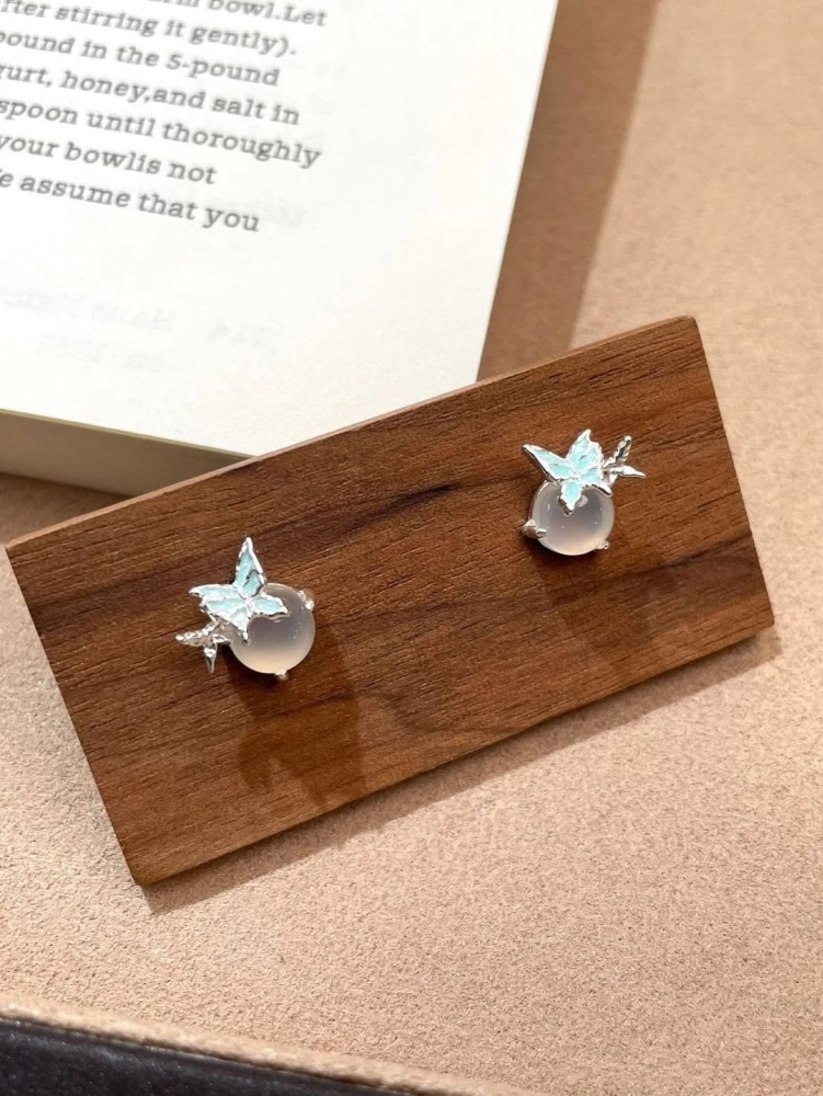 • 仙女氣質 貼耳 琺瑯耳環 白玉髓