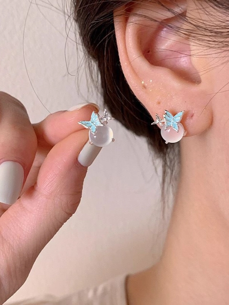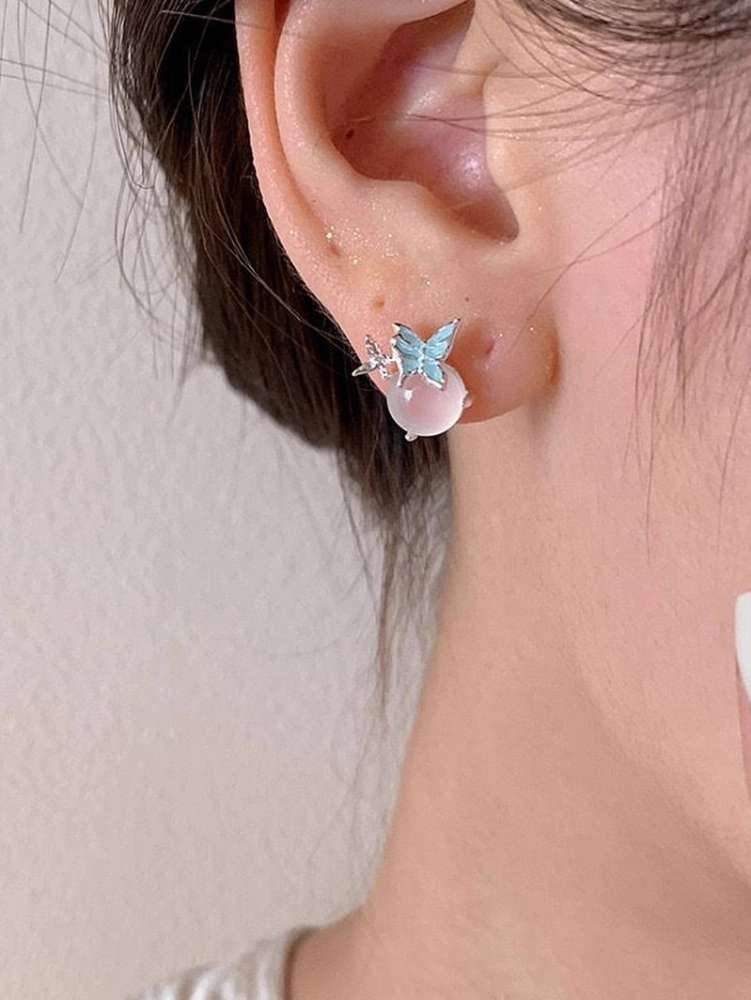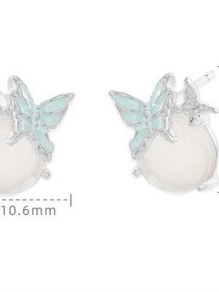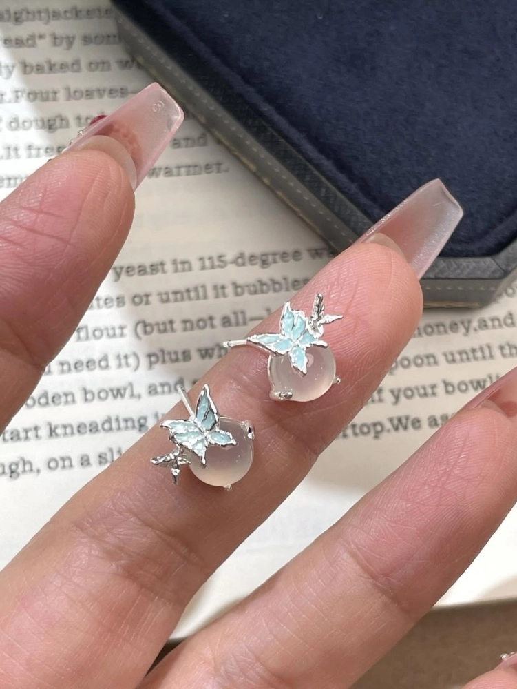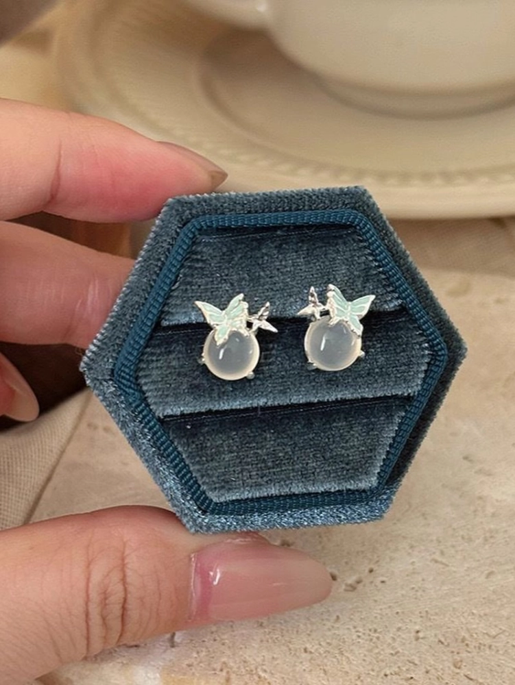• 仙女氣質 貼耳 琺瑯耳環 白玉髓