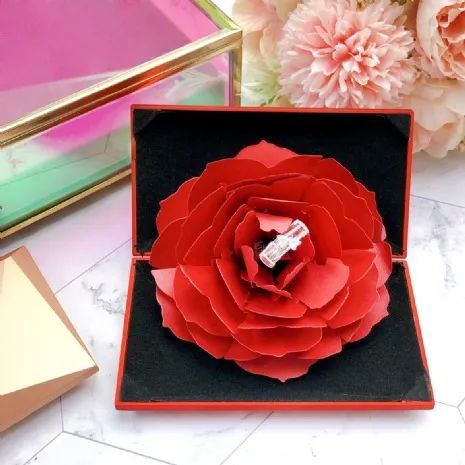 • (缺)玫瑰紅花求婚戒盒 12個