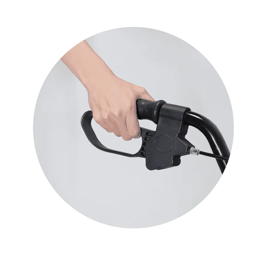 人體工學握把,搭配上握減速煞車、下壓煞車鎖定功能,