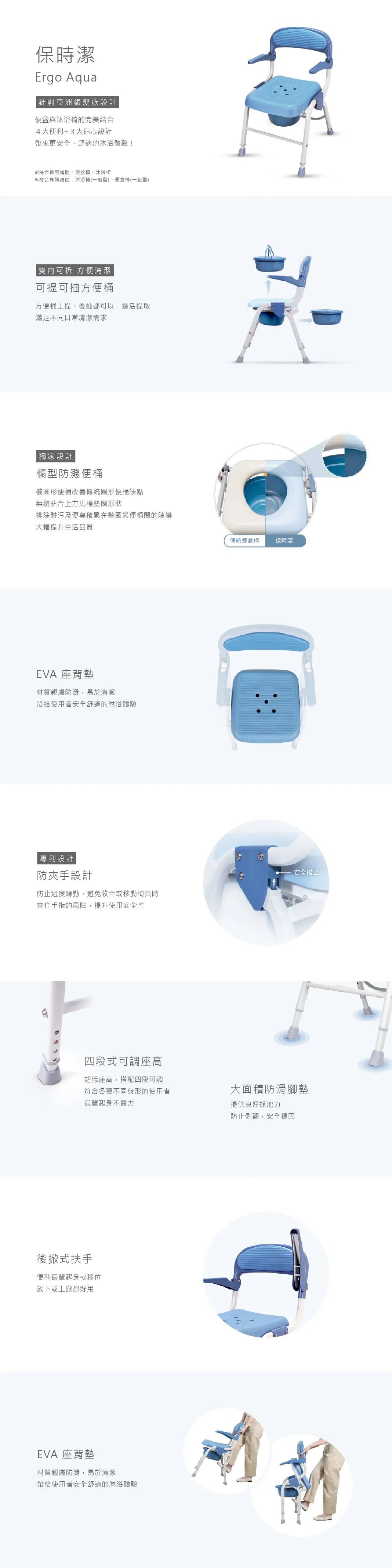 | 座高 (不含洗澡墊) (mm) | 400-475 (可依需求將椅腳高度調整至不同孔位,每段間距為 25 mm) |