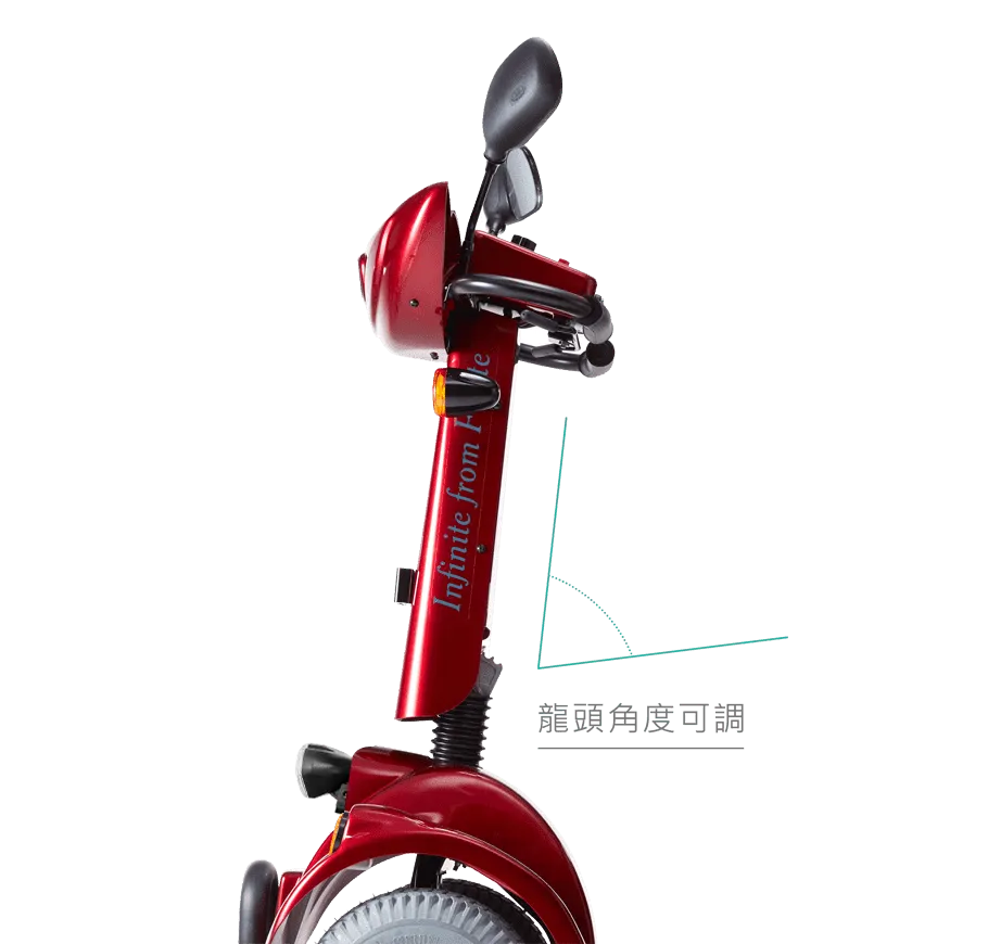 人體適配可拆式座椅,可依您的身形進行座椅前後、側向90度多向調整。龍頭角度調整機構