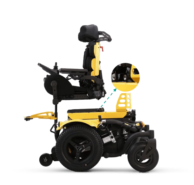 搭載 Tilt-in-space 空中傾倒系統,孩子可以輕鬆地改變坐姿位置,從而將壓力由臀部分散至背部,或將臀部壓力分散至背部,放鬆坐壓,即時釋放臀部壓力,此功能有助於預防壓傷(壓瘡)發生的風險並避免背部疼痛。還有助於在下坡行駛時保持穩定性,使行駛更加安全和舒適。