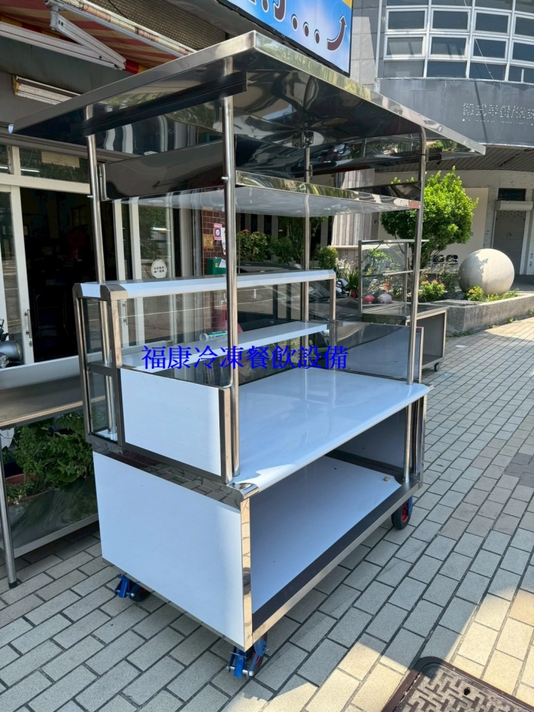 商品訂製營業用移動式三孔屋頂玻璃吧檯餐車 2尺8x5尺8三洞架高/三孔隔開/防火桶/煞車輪/煮麵機