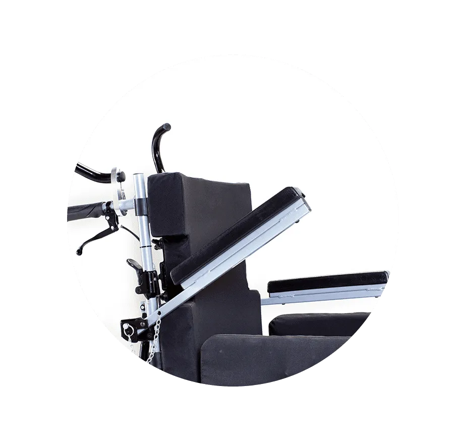 具有可調整支撐高度、前後位置及角度功能,正確擺位頭部,提供穩定支撐。為了更適配孩子的身型,您也可加價選購:側枕、一般枕頭加粘帶或特製枕頭。平面型輪椅背靠、座墊