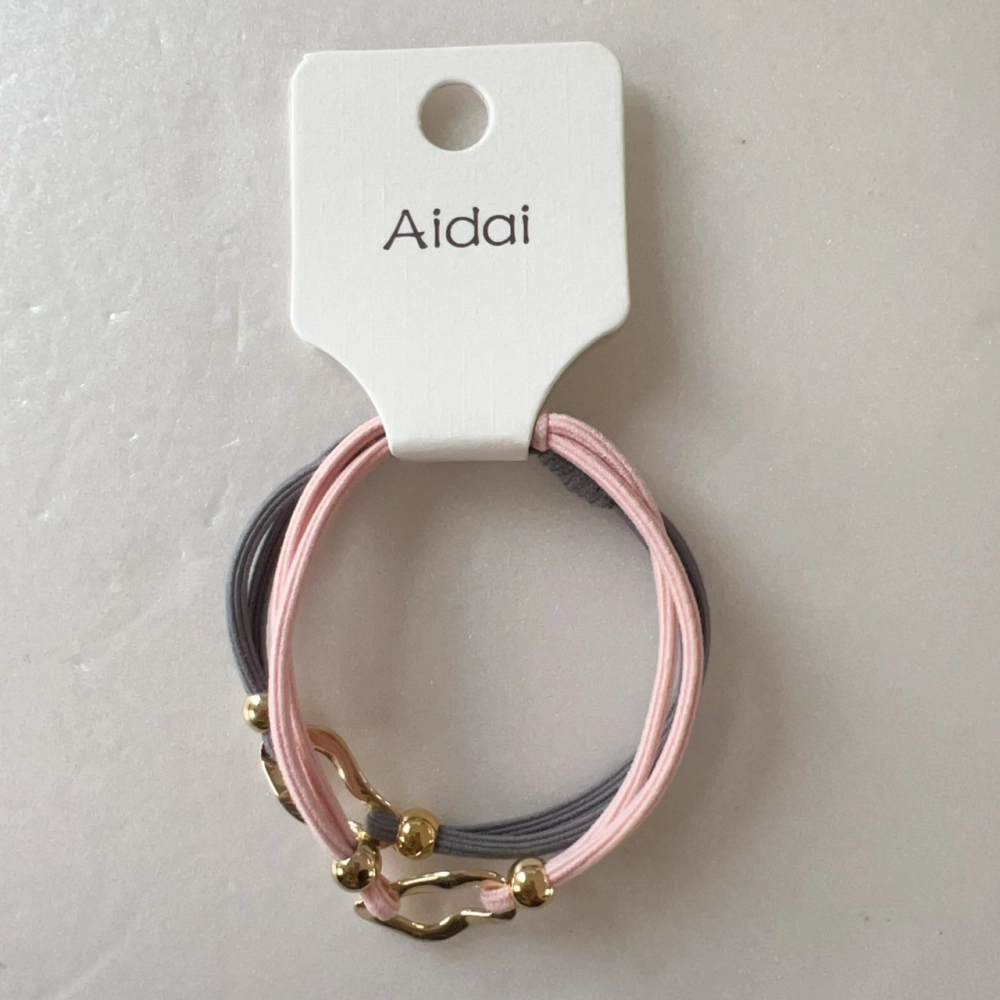• AIdAI雍容簡約髮束2入-金環飾-粉灰