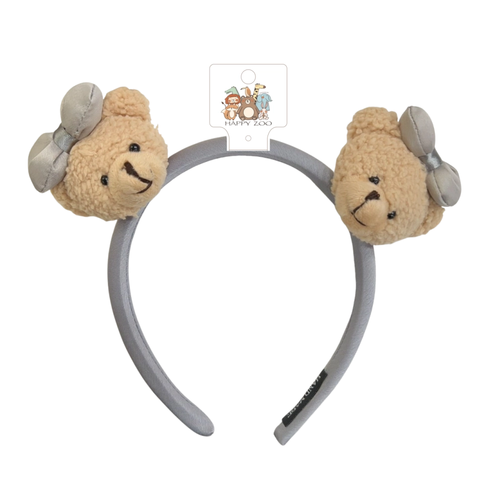 • 奶呼呼可愛蝴蝶結小熊髮圈-灰藍