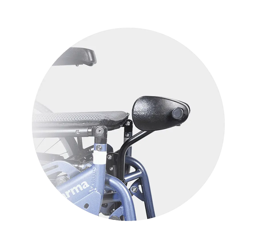 可支撐下肢輔助站立、防止身體滑落;深度及寬度無段可調,高低可調前踏板觸地設計