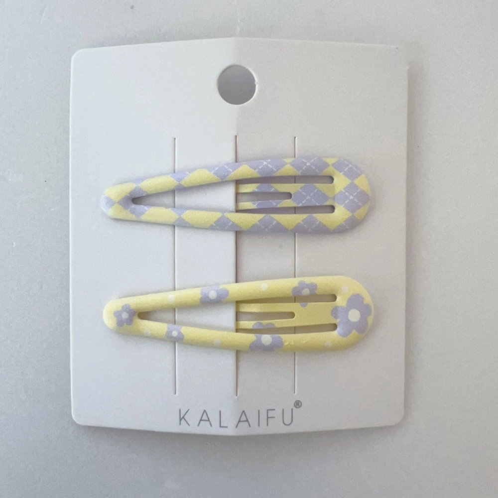 • KALAIFU繪.BB夾2入-水滴-黃紫小花