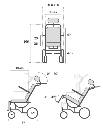 • 座椅深度:30-46cm (2cm 間距)