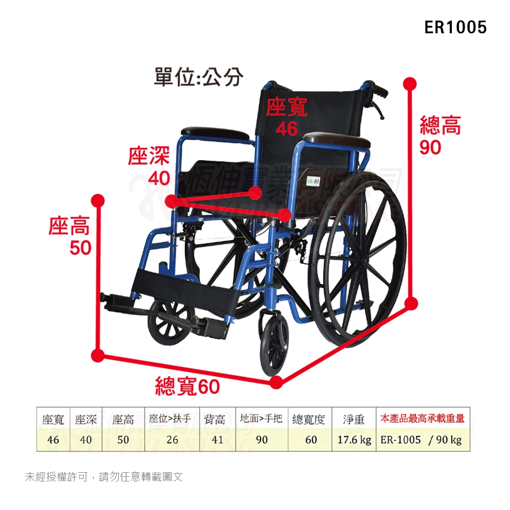 商品『B款』恆伸 ER0050217 鋁合金中輪單層不折背輪椅『基本款』(紅/藍)