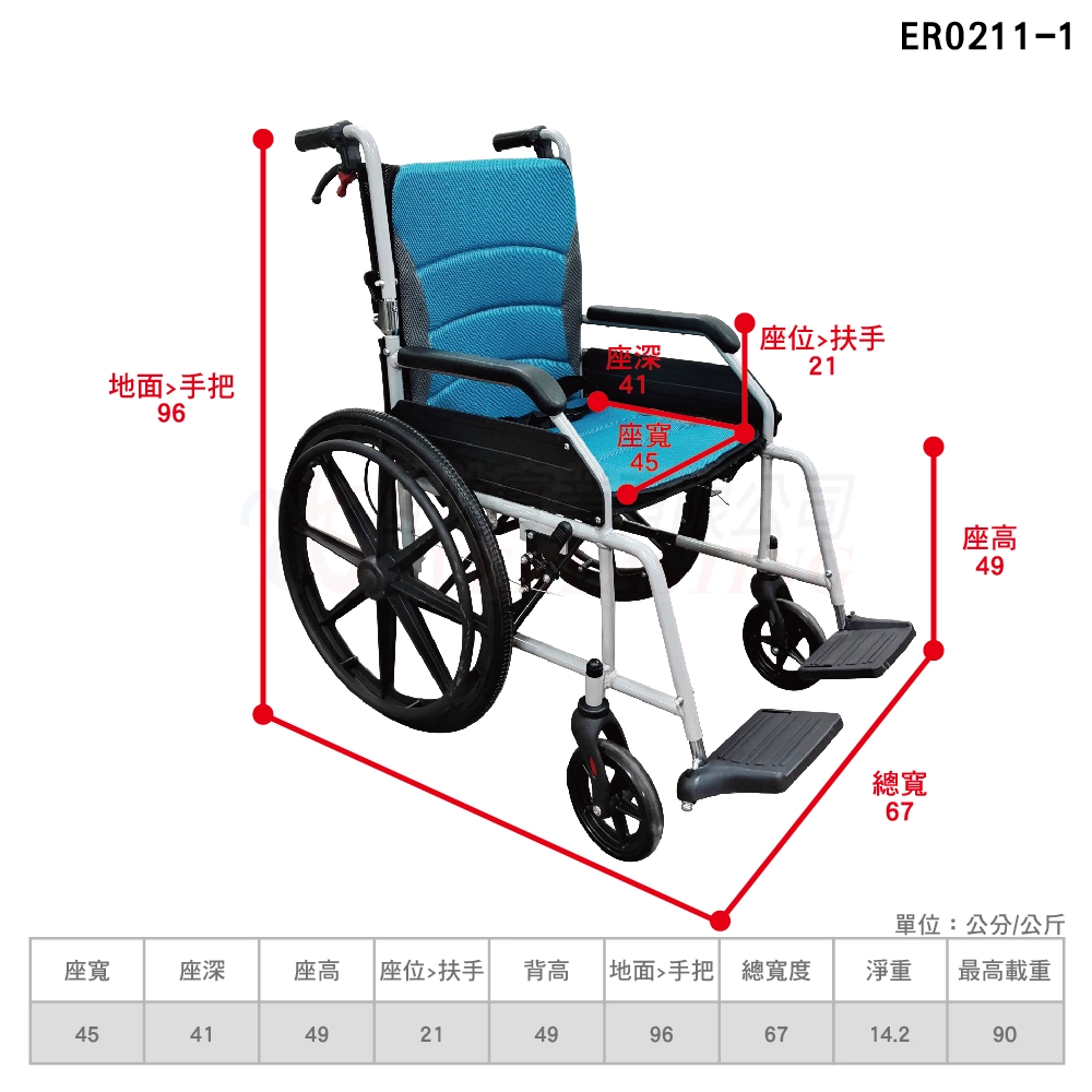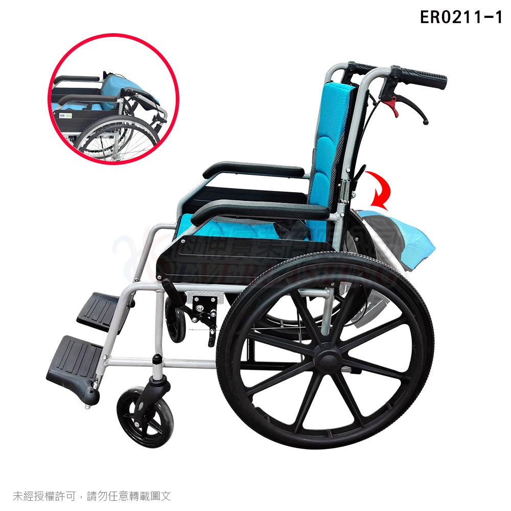 商品『B款』恆伸 ER0218-2 鋁合金中輪雙層不折背輪椅『拆腳升級款』