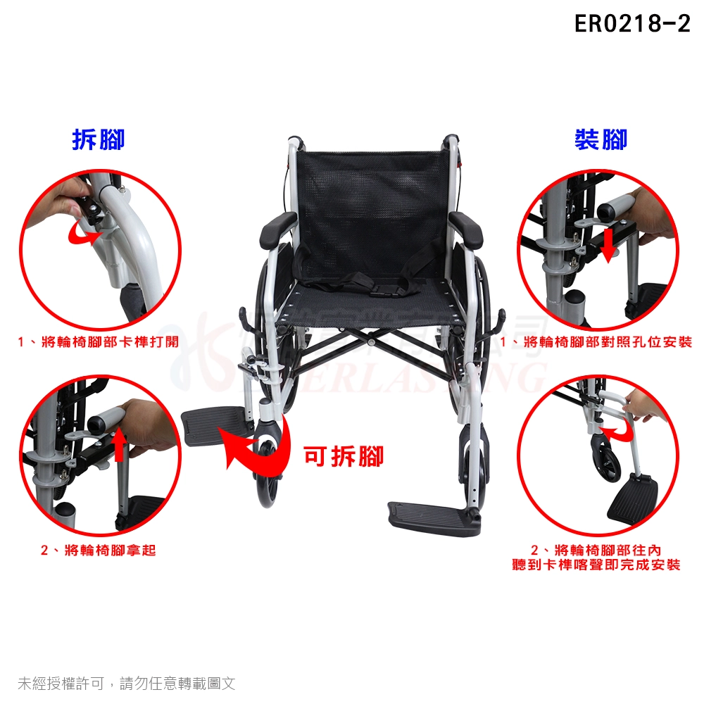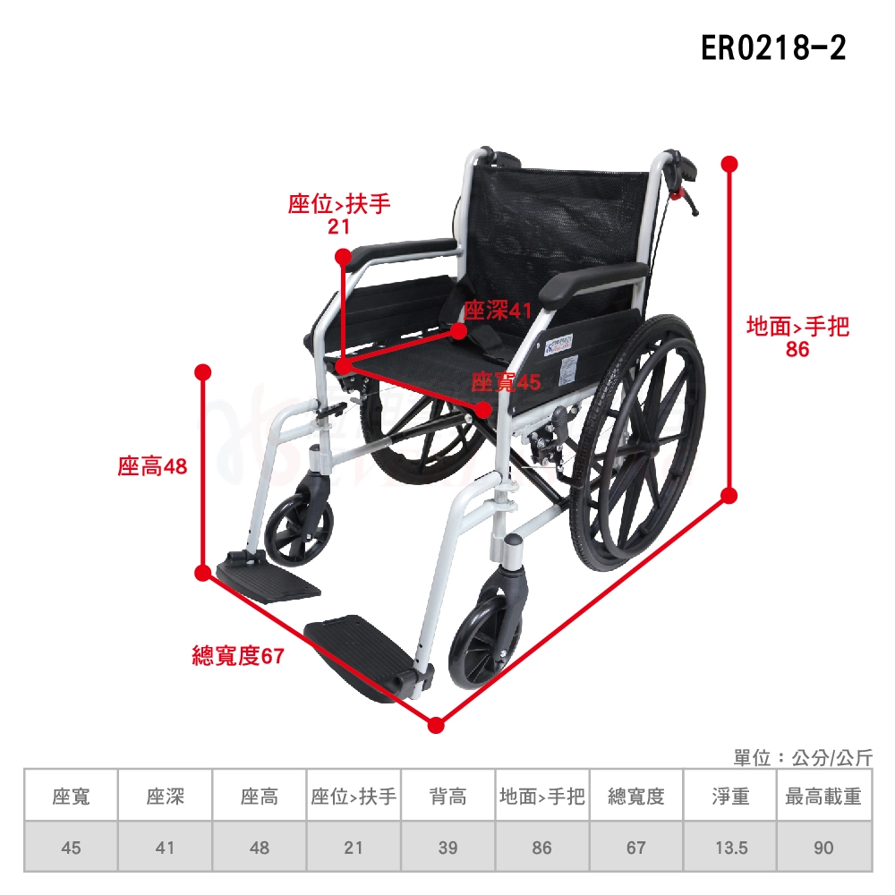 商品『B款』恆伸 ER0217-2 鋁合金中輪單層不折背輪椅『拆腳升級款』