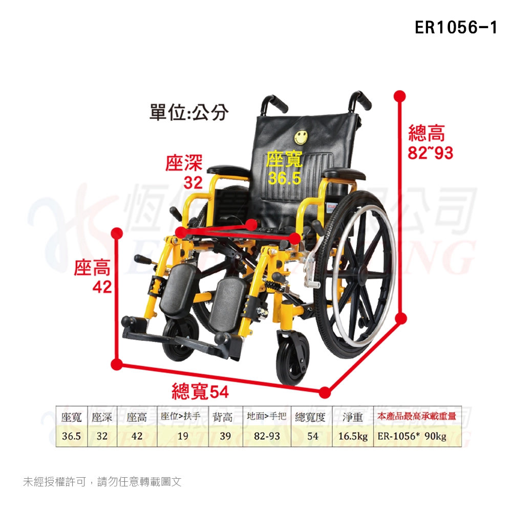 商品『C款』恆伸 ER1202-1 鐵製加重加寬型輪椅-22"