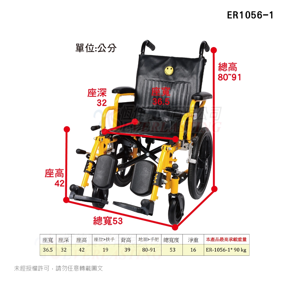商品『A款』恆伸 ER1005 鐵製掀手拆腳輪椅