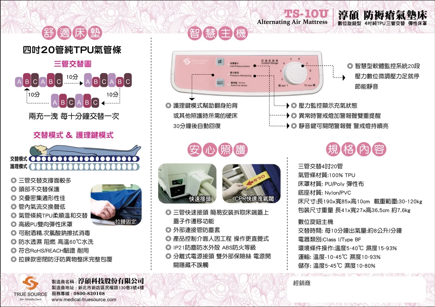 • TS-10U 旋鈕數位型 4吋三管純TPU氣墊床