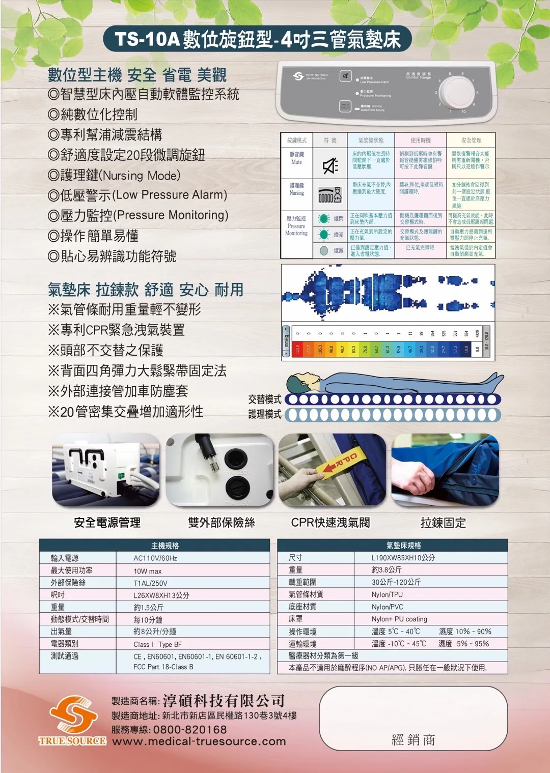 • TS-10A 旋鈕數位型 4吋三管氣墊床