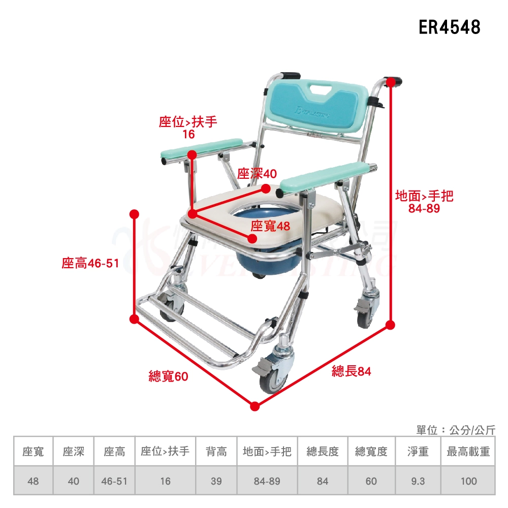 商品『A款』恆伸 ER1005 鐵製掀手拆腳輪椅