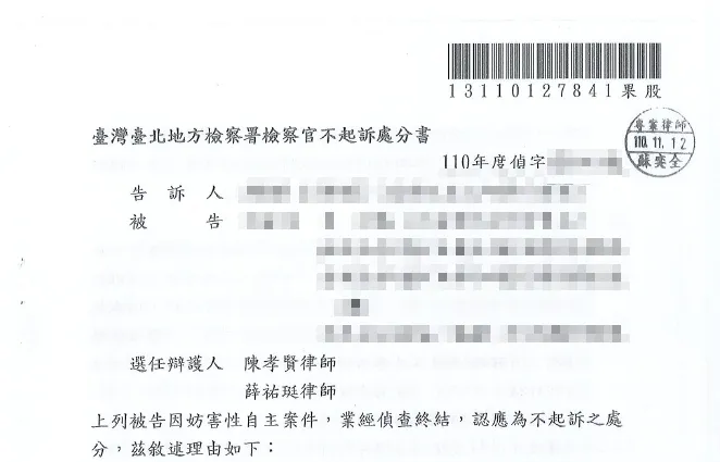 • 妨害性自主不起訴