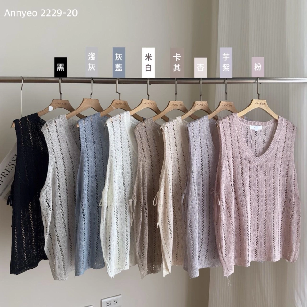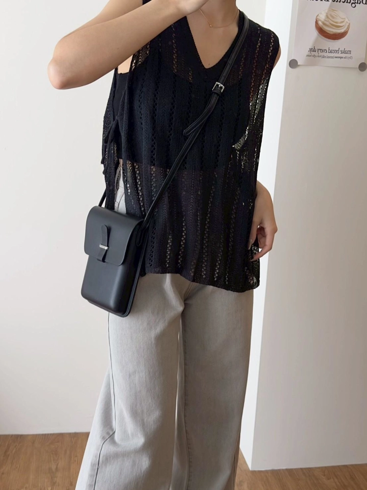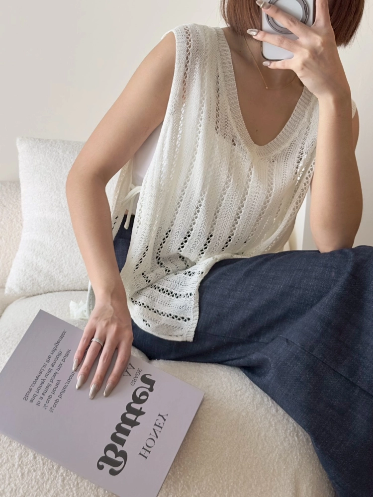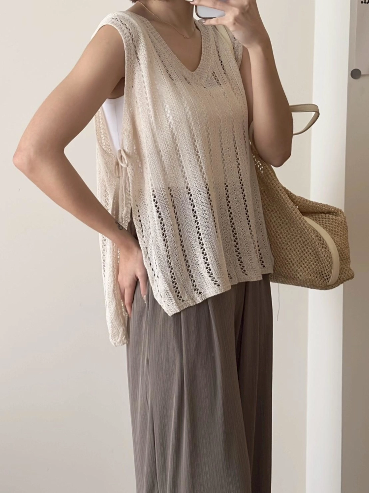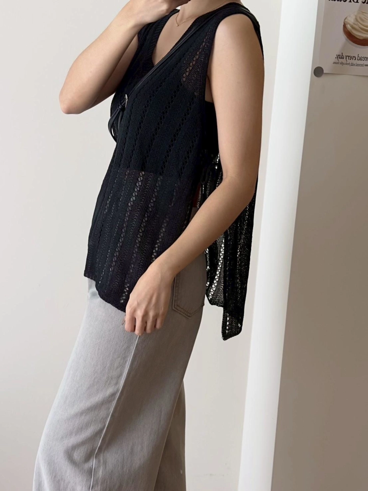 • 簍空側綁帶針織背心