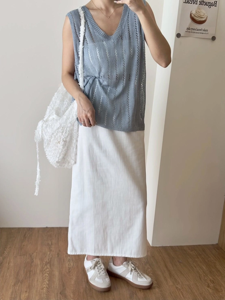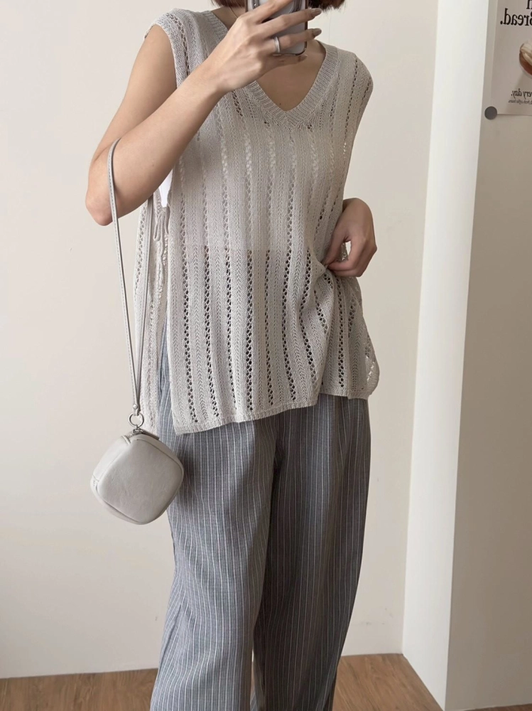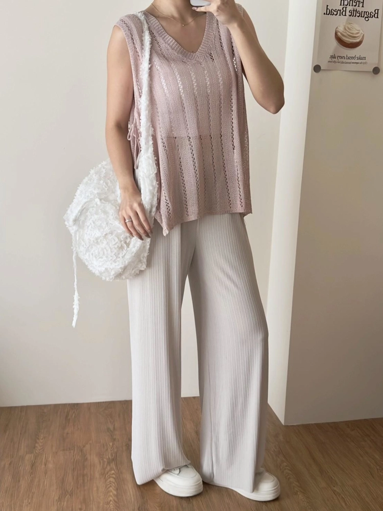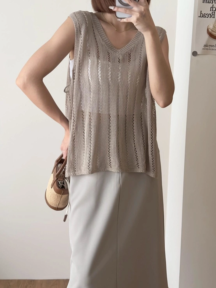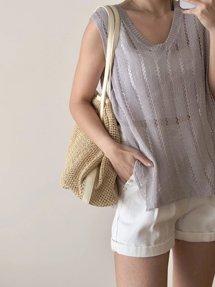 • 簍空側綁帶針織背心