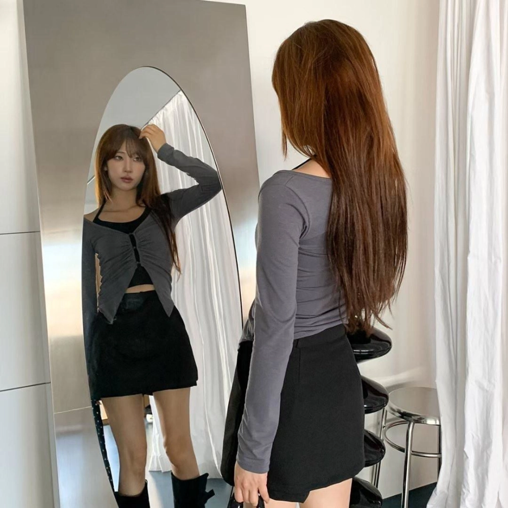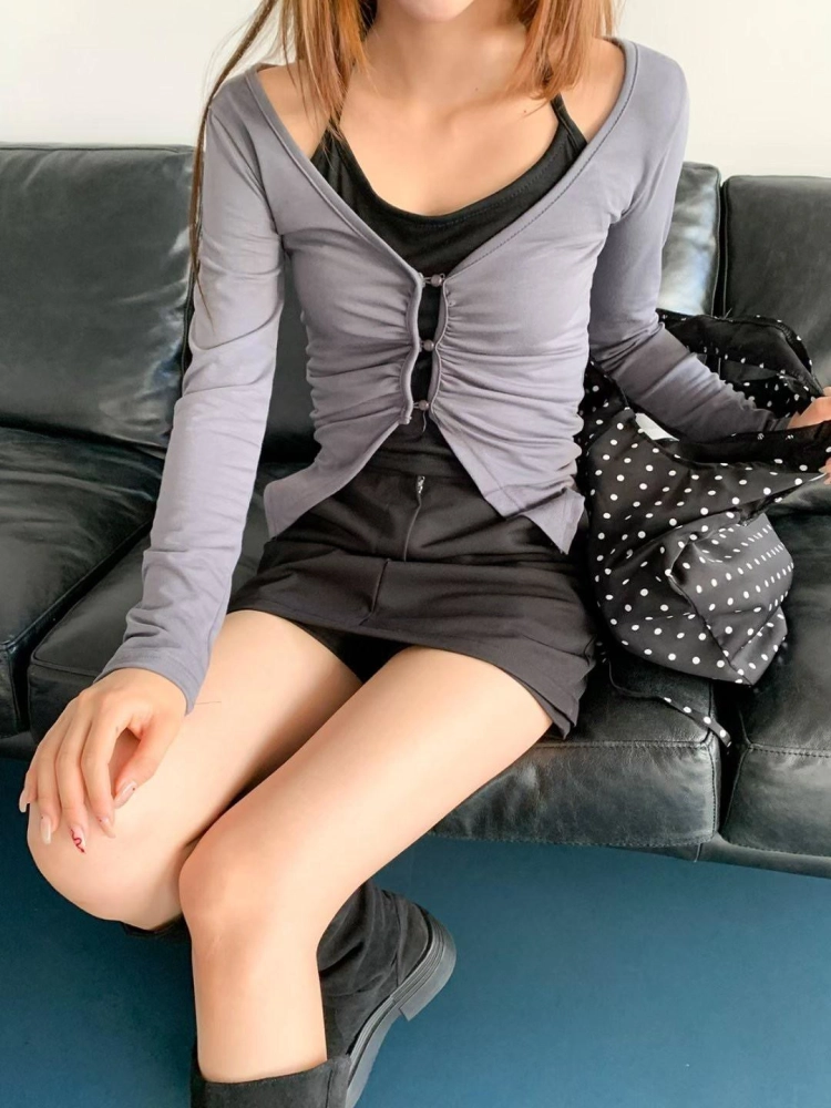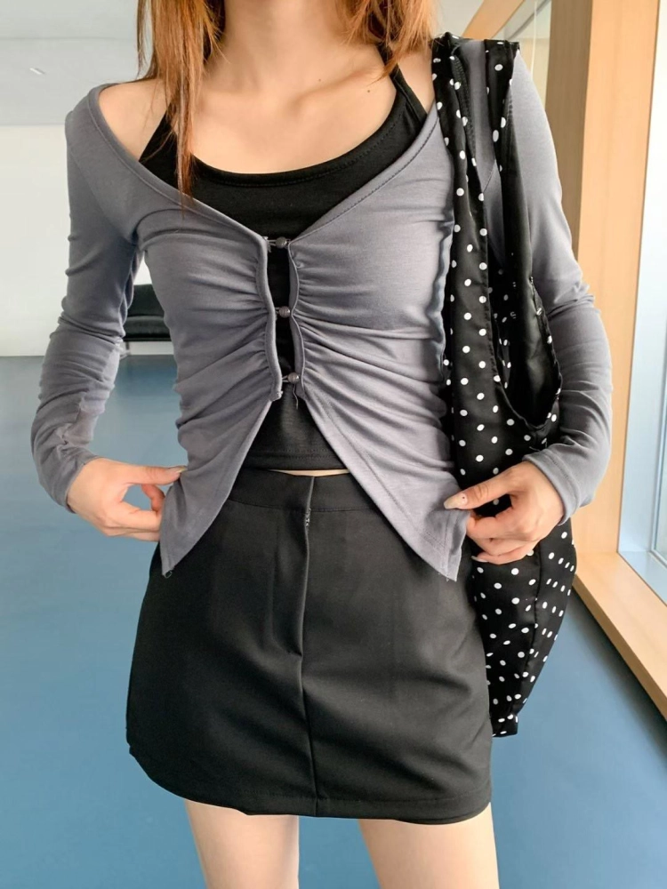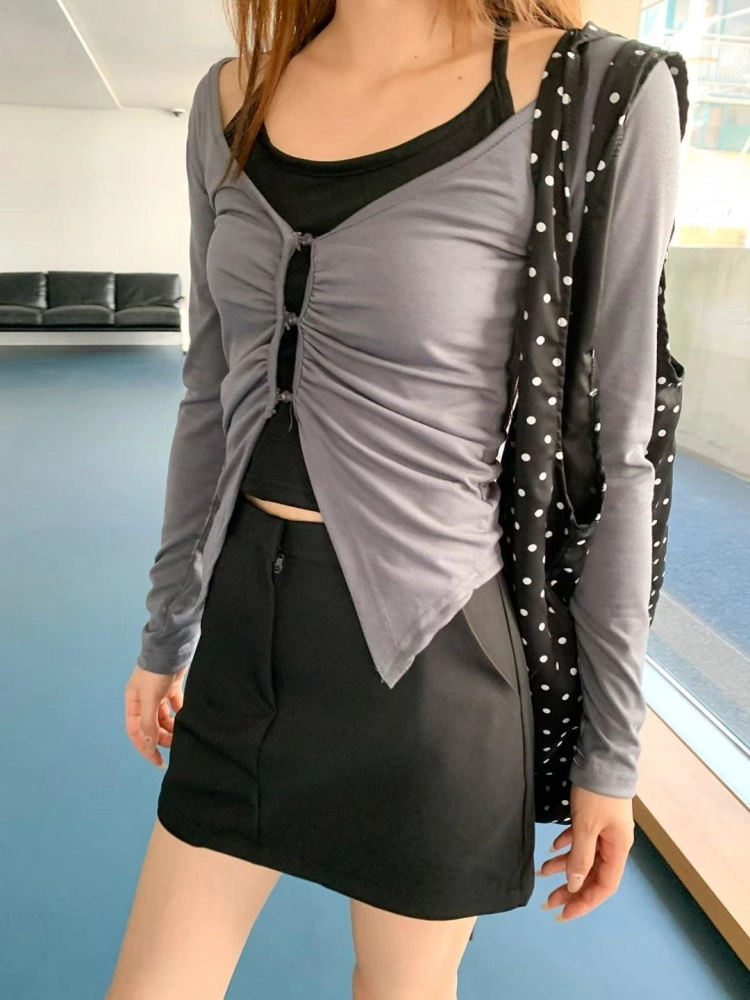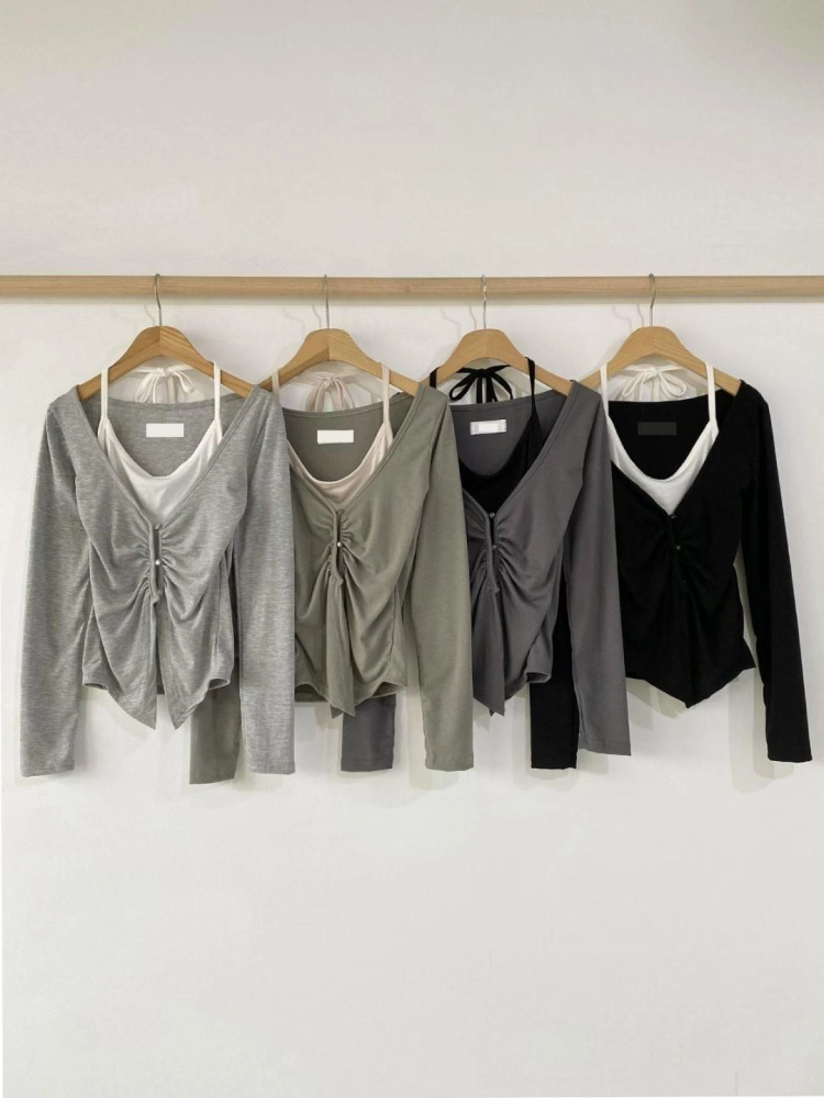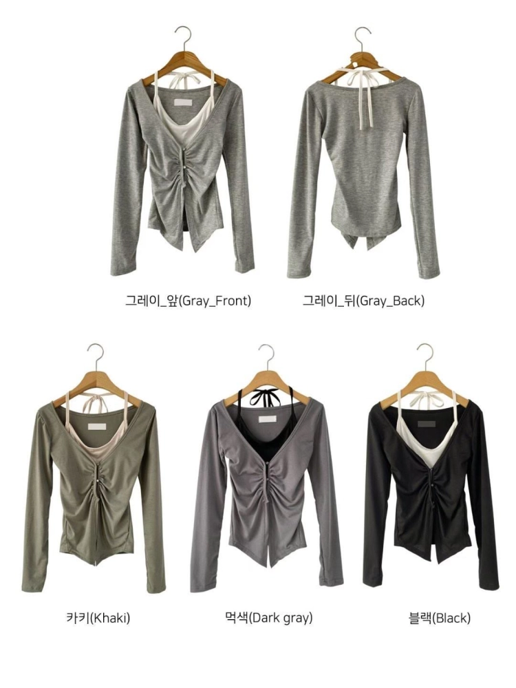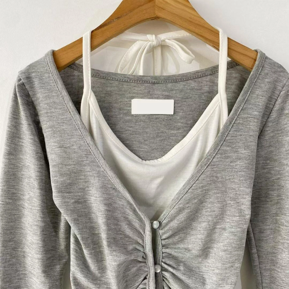 • 正韓假兩件Y2K掛脖褶皺上衣