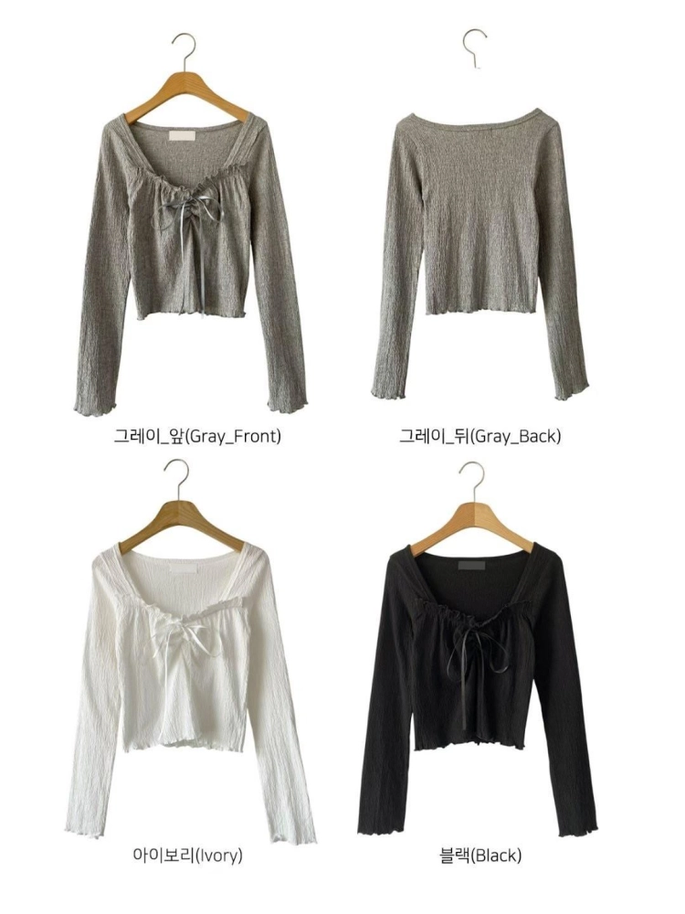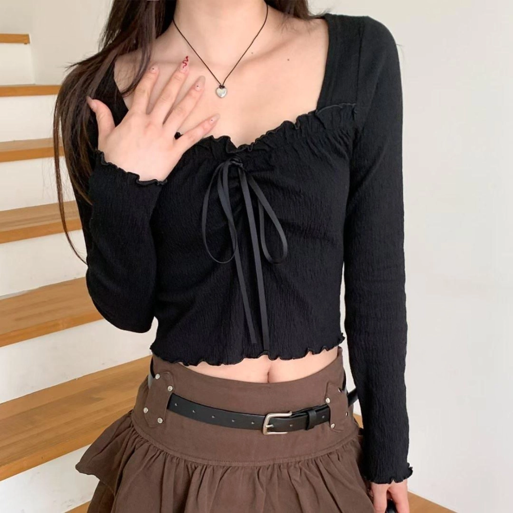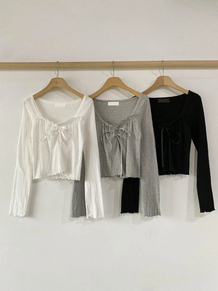 • 正韓修身木耳邊方領蝴蝶結上衣