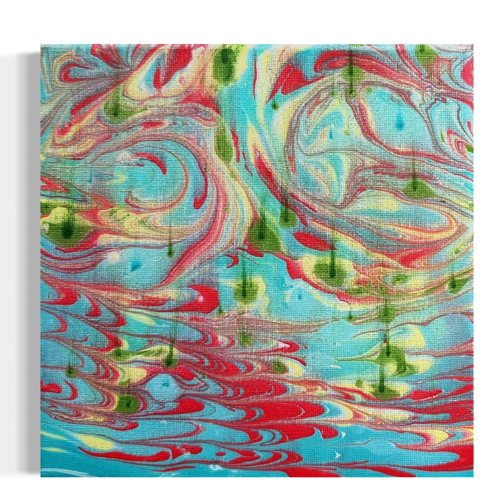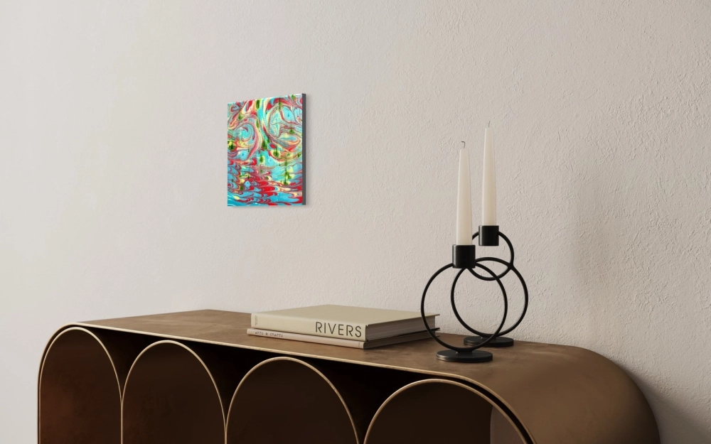 色彩在畫布上旋舞交錯,如同一場無聲的幻象,