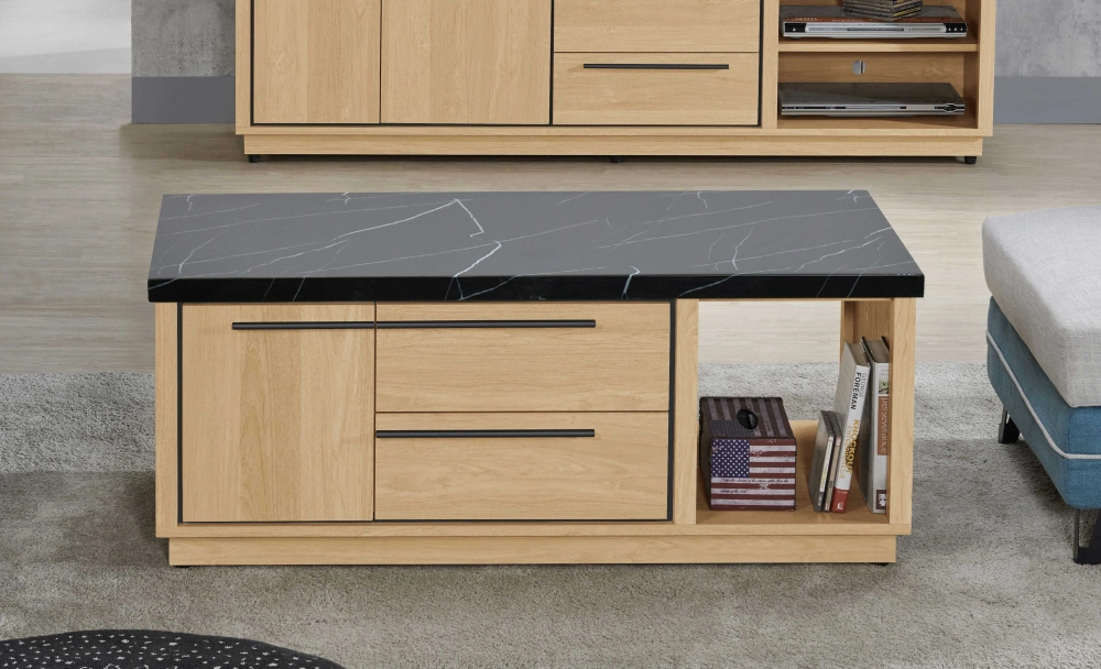 材質 | 面板.正面.側面採用符合國際低甲醛木心板, 表面為專利技術耐磨橡紋同調+4cm人造石面 |