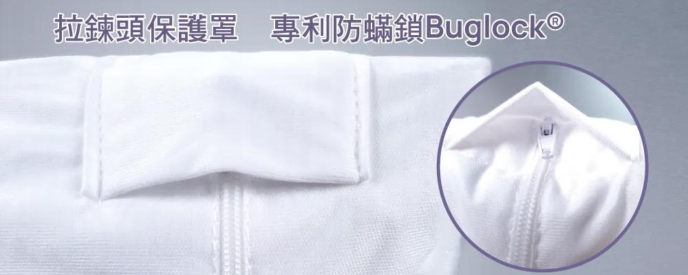 獨家專利防蟎鎖®+貼心拉鍊頭保護罩設計
