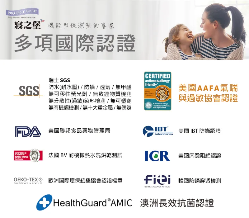 業界最高規 榮獲AAFA 美國氣喘與過敏協會認證