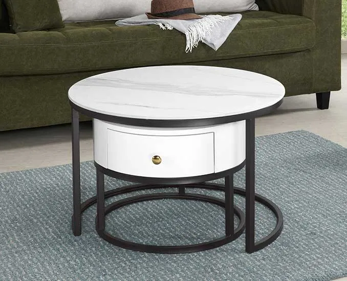 沃爾登單抽雙岩板組合圓几(全組)