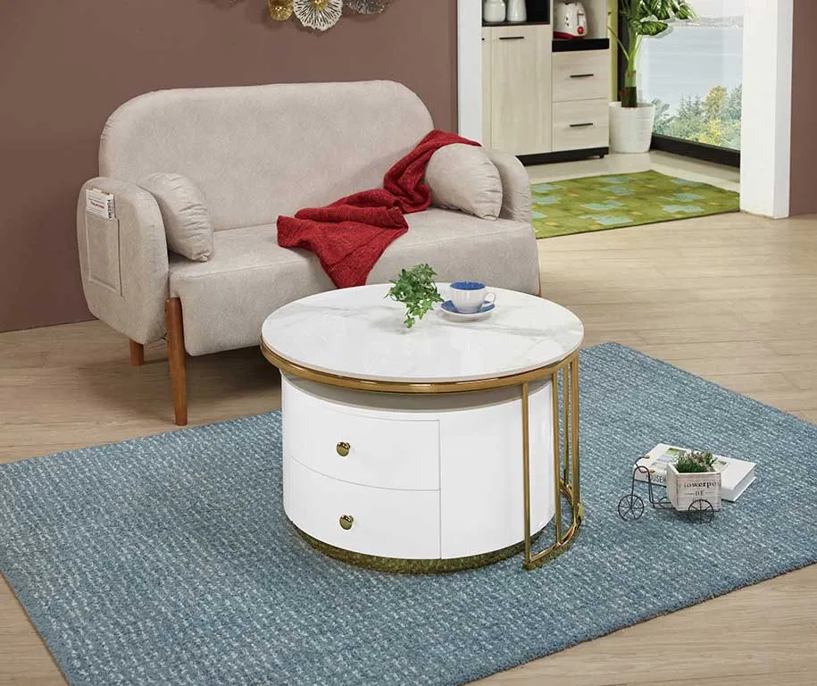 克洛弗二抽雙岩板組合圓几(全組)