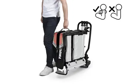 輕鬆安裝自行車,通過可拆卸的自行車臂與Thule AcuTight扭矩限制旋鈕,當達到最佳扭矩時會發出咔嗒聲。自行車臂可上鎖,但不能完全保證防止自行車被盜