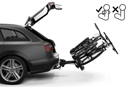 輕鬆安裝自行車,通過可拆卸的自行車臂與Thule AcuTight扭矩限制旋鈕,當達到最佳扭矩時會發出咔嗒聲。自行車臂可上鎖,但不能完全保證防止自行車被盜