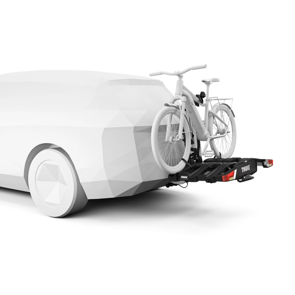 輕鬆安裝自行車,通過可拆卸的自行車臂與Thule AcuTight扭矩限制旋鈕,當達到最佳扭矩時會發出咔嗒聲。自行車臂可上鎖,但不能完全保證防止自行車被盜