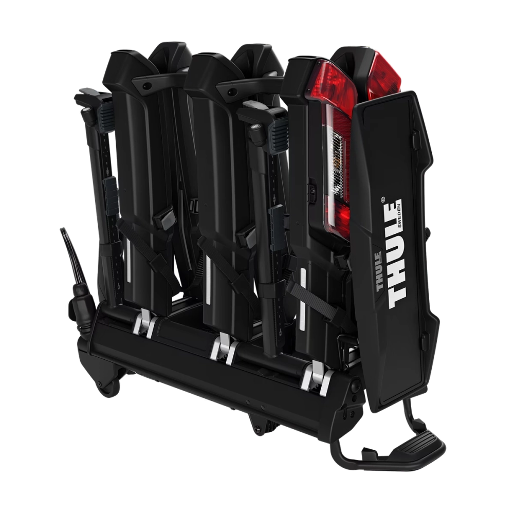 Thule Epos 智慧型方案可讓您輕鬆搬運自行車,讓您充分享受騎乘自行車的時間。可完全折疊,便於載運和存放,並可傾斜以便後車廂使用。這款自行車架專為妥善保管您的自行車而設計;自行車之間有寬敞的間距,可容納超長軸距車款,即使大型輪胎車款也能輕鬆固定,讓您享受愉快的騎車時光。