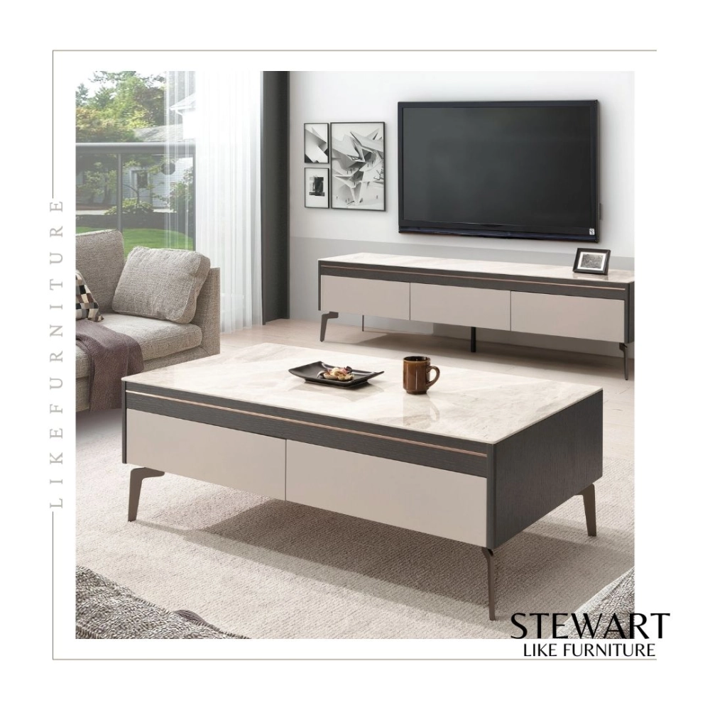 MDF / 實木皮噴漆 / 義大利淺灰岩板 / 金屬件