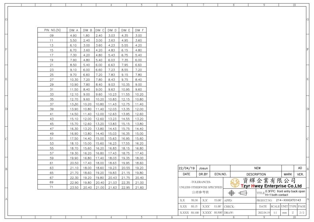 •  FPC 0.3PH 前插后翻 H=1.0 上下接触