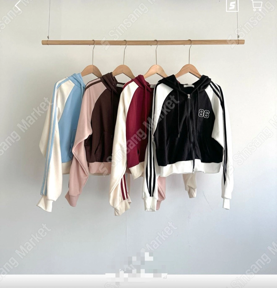 • 正韓雙色拼線連帽拉鍊外套