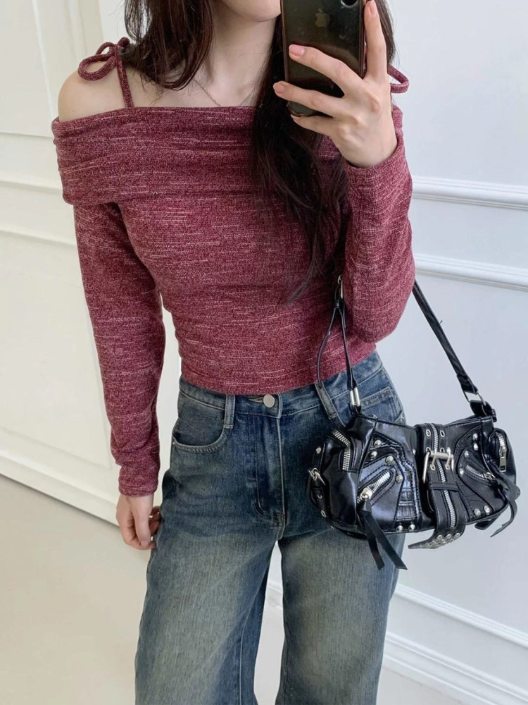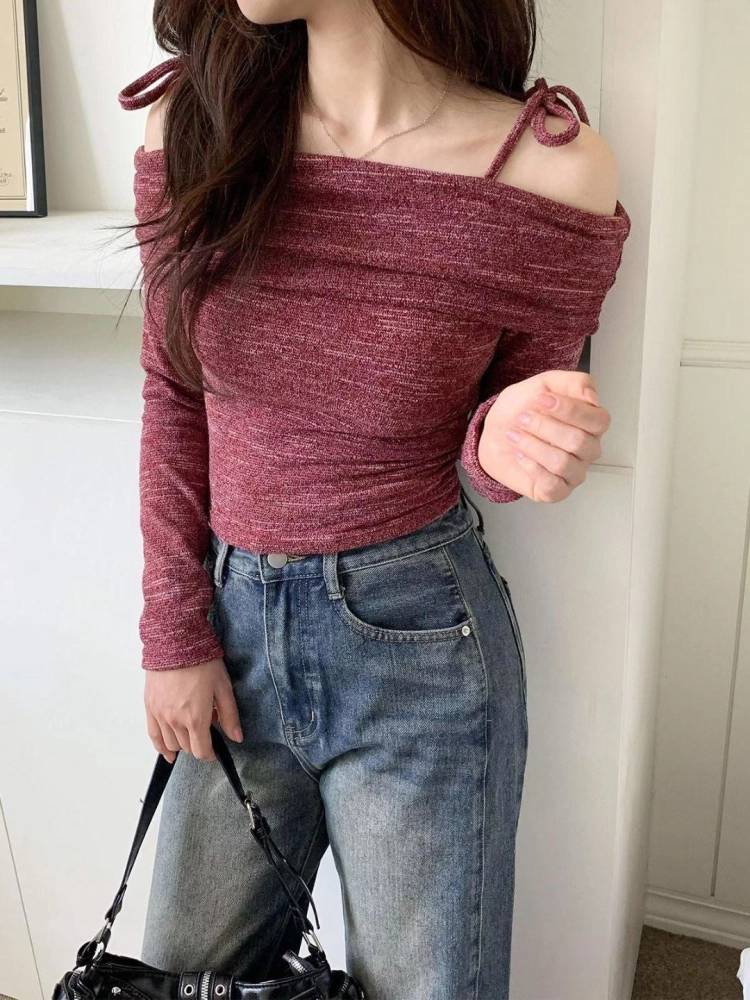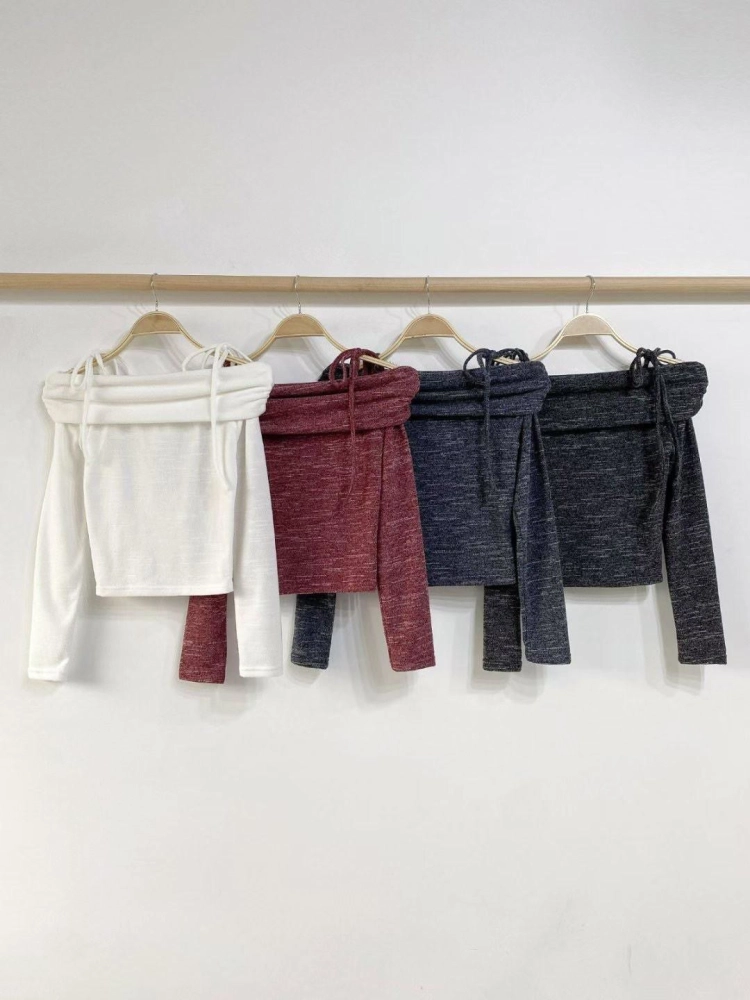• 正韓花紋一字領上衣